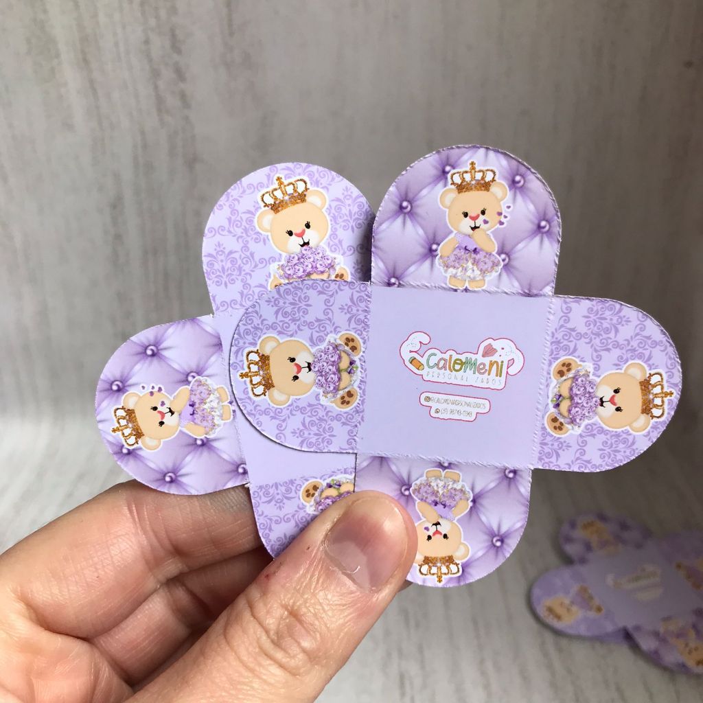 Forminhas de doce Personalizadas Ursinha Princesa/ Rosa/ Lilas/Chá de bebê 4 Pétalas Festa, Aniversário/Lembrancinhas