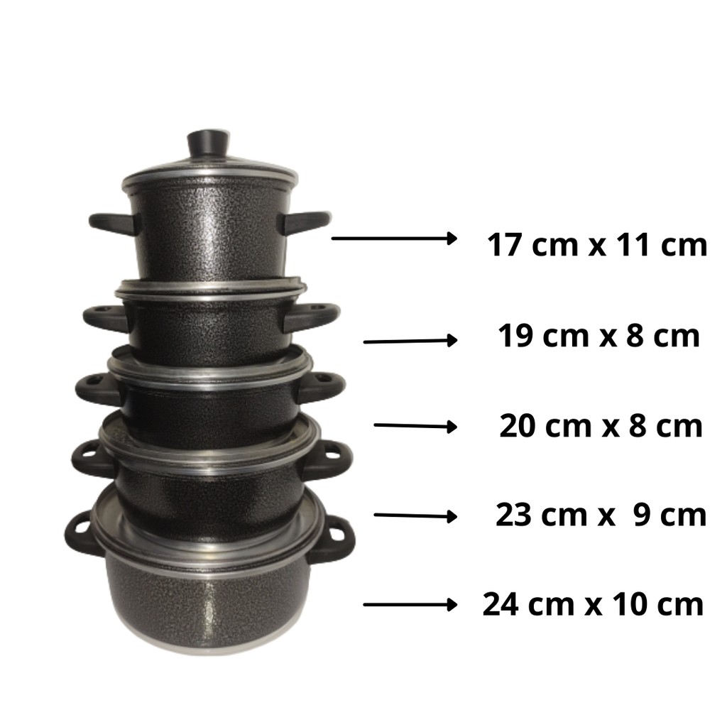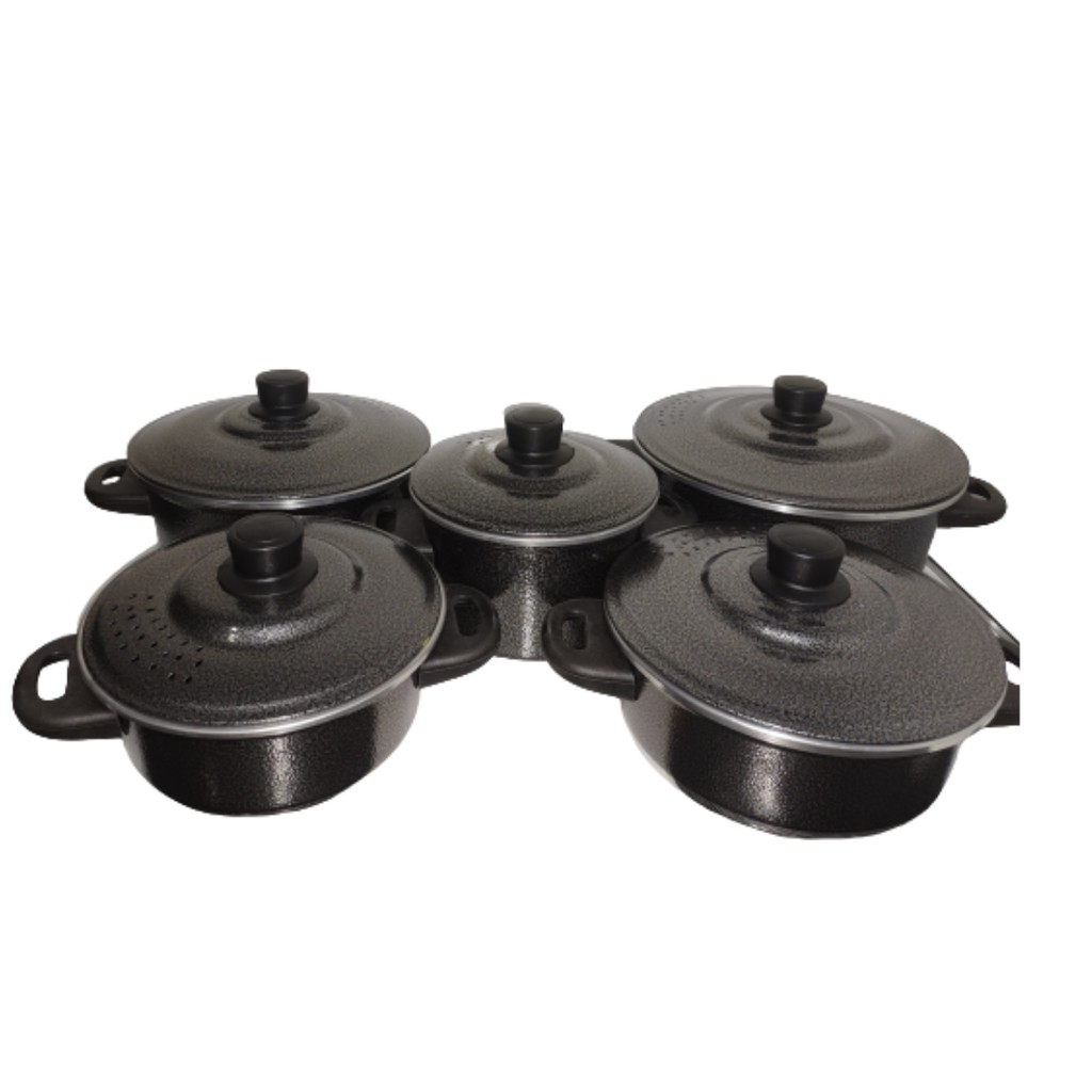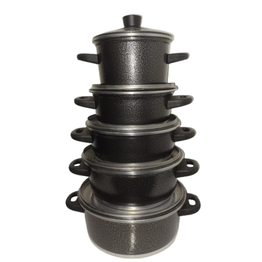 jogo de panela preta craqueada de alumínio 5 pç