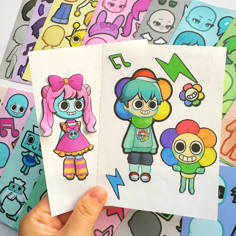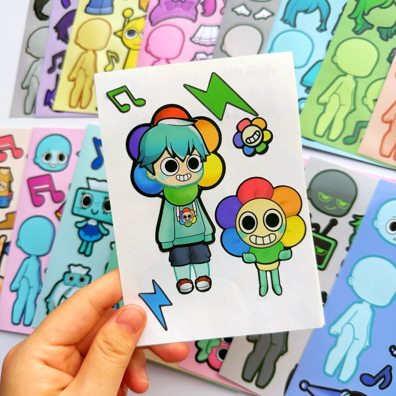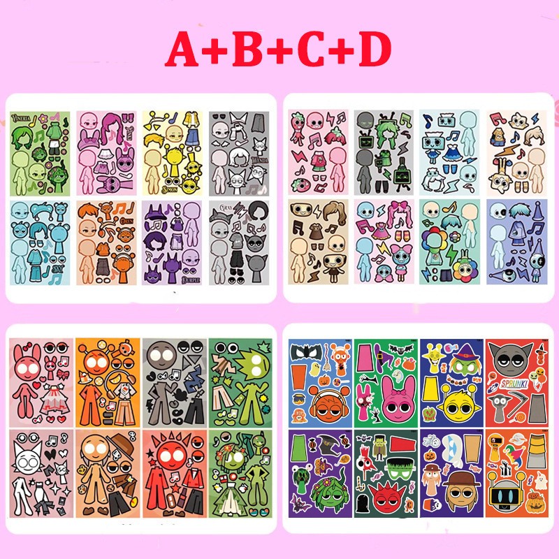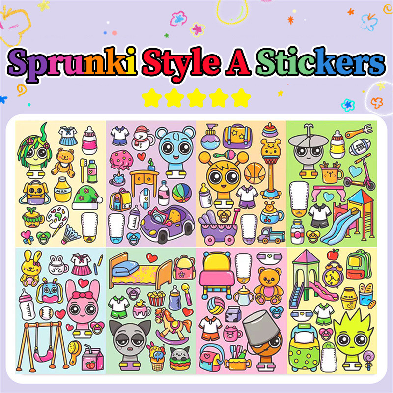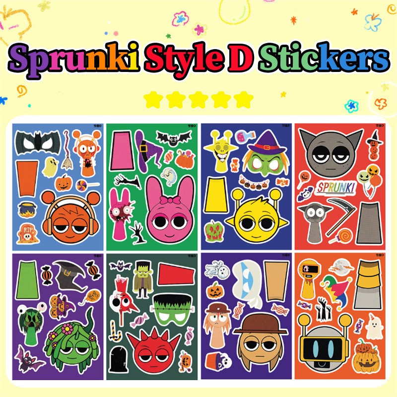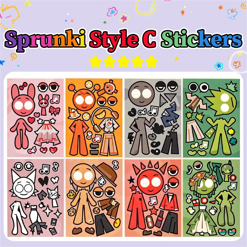 8 Pçs Sprunki Adesivo Brinquedo 2025 Novo Criativo Artesanal DIY Rosto Mudando Quebra-Cabeça Vestir-Se Adesivos