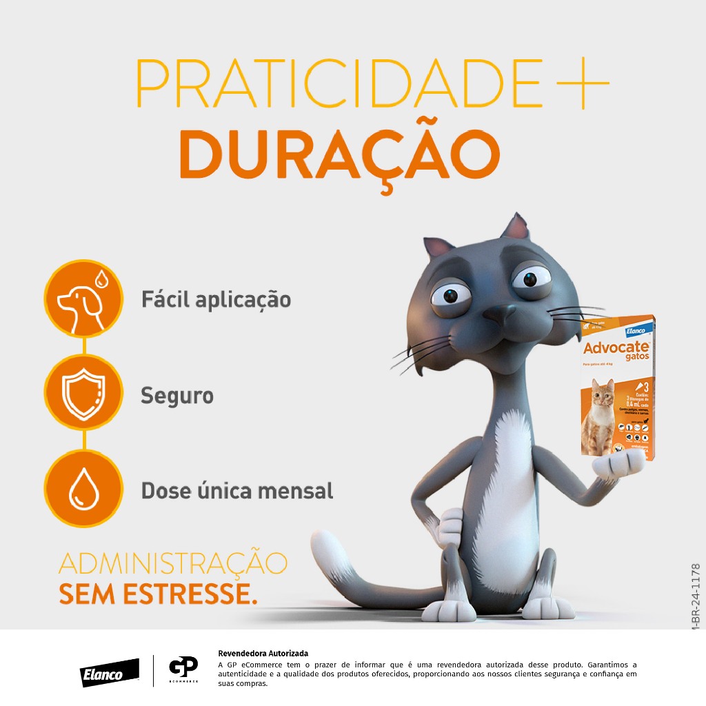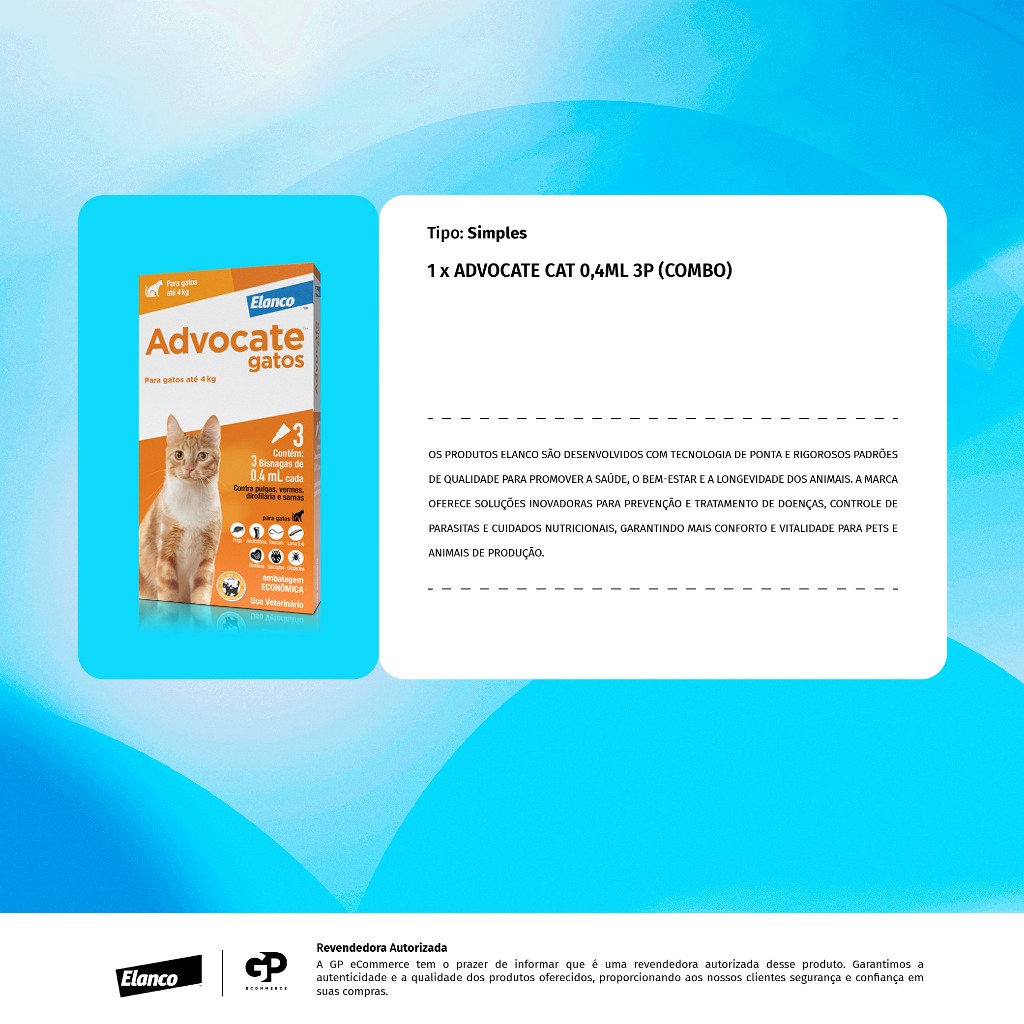 Advocate Cat Antipulgas para Gatos de até 4kg Combo de 3 Pipetas de 0,4ml Elanco
