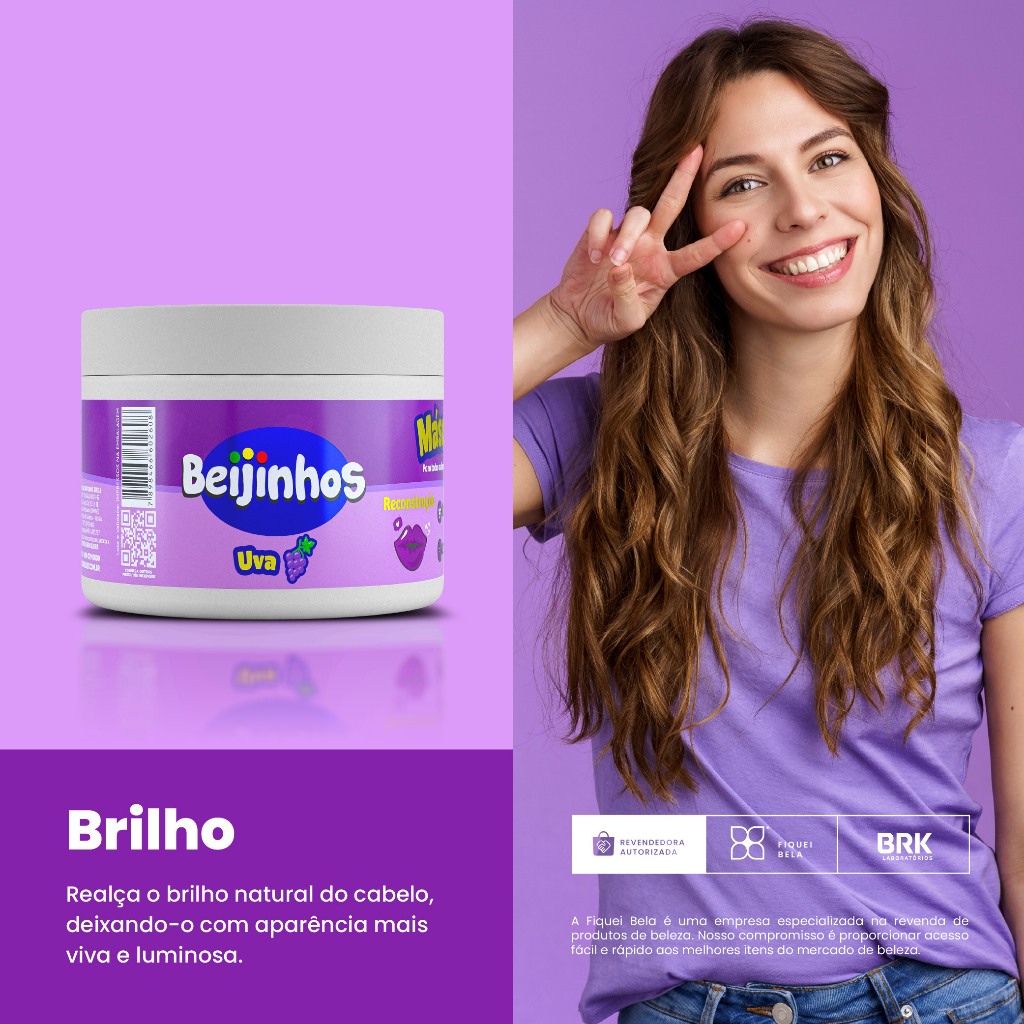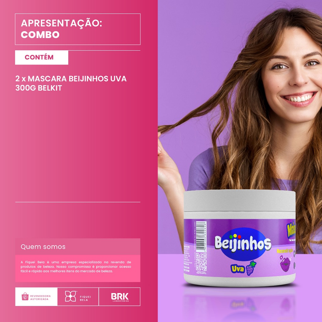 Kit 2 Máscara Capilar Hidratante Beijinhos Uva 300g Belkit