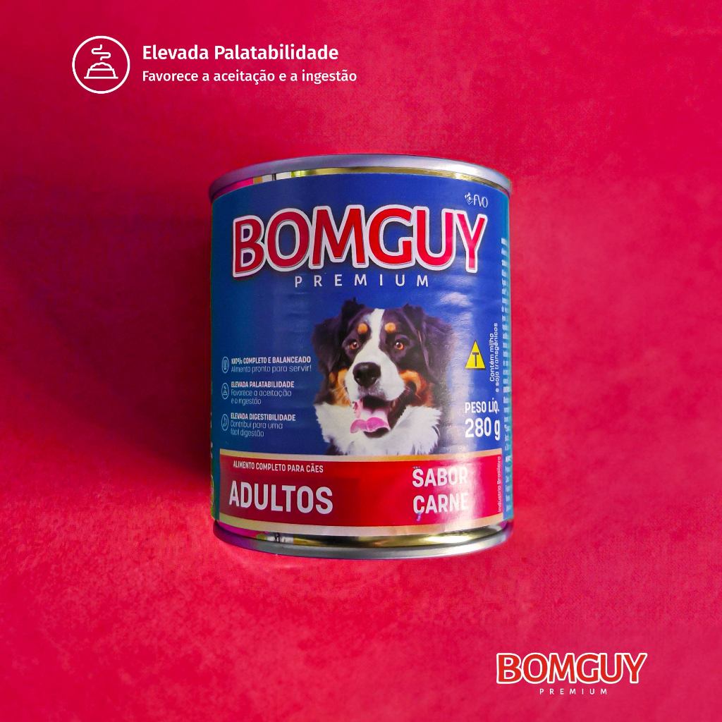 Kit 3 Bomguy Premium Patê Sabor Carne Ração Úmida para Cães Adultos 280g FVO