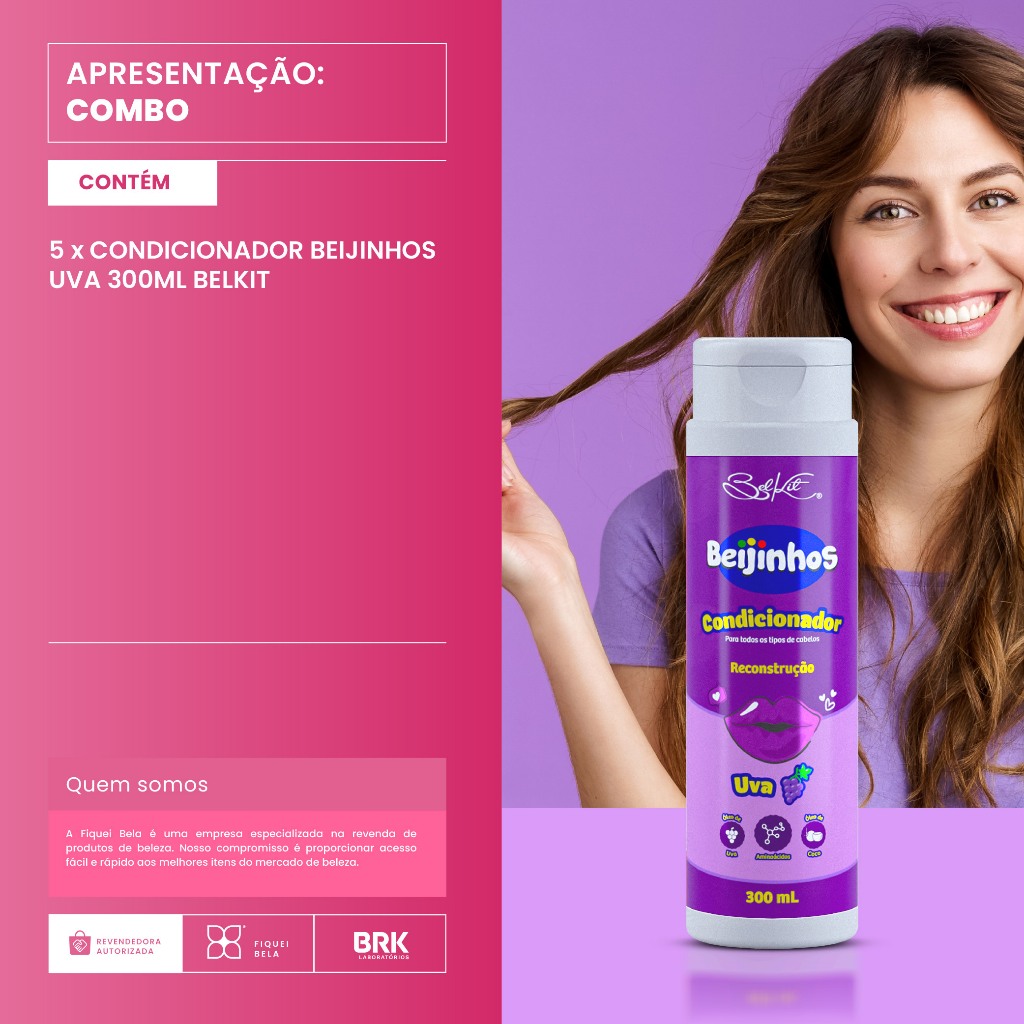 Kit 5 Condicionador Hidratante Beijinhos Uva 300ml Belkit