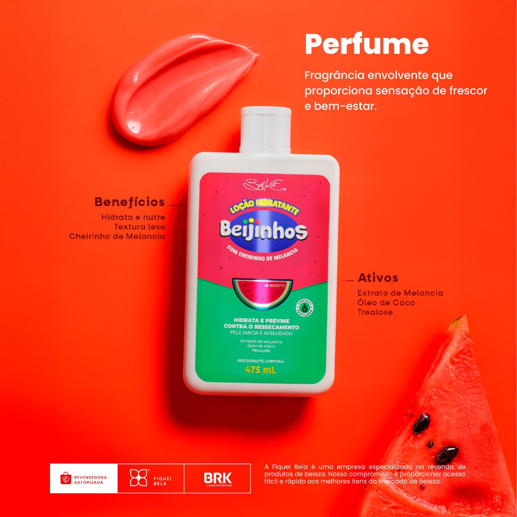 Loção Hidratante Desodorante Corporal Beijinhos Melancia 475ml Belkit