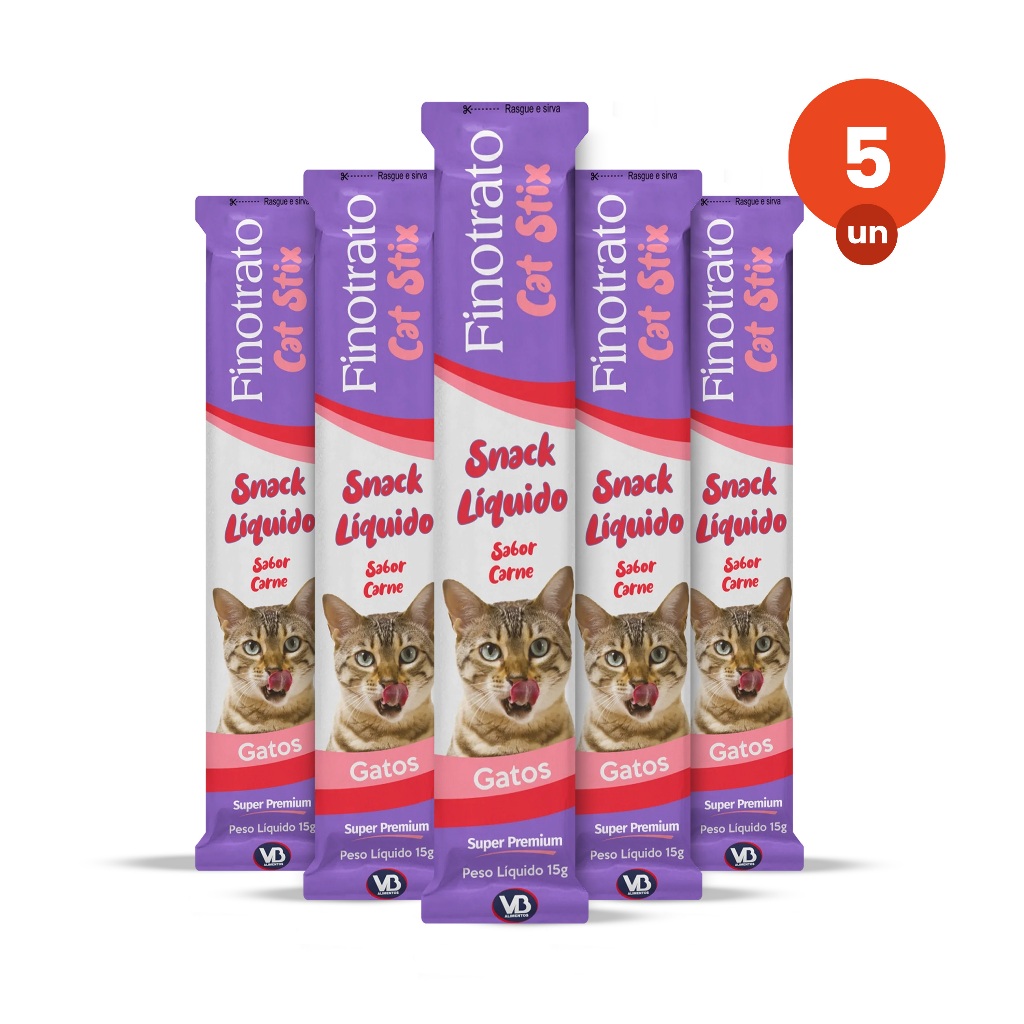 kit 5 Petisco Finotrato Cat Stix Gatos Adultos Sabor Carne 15g