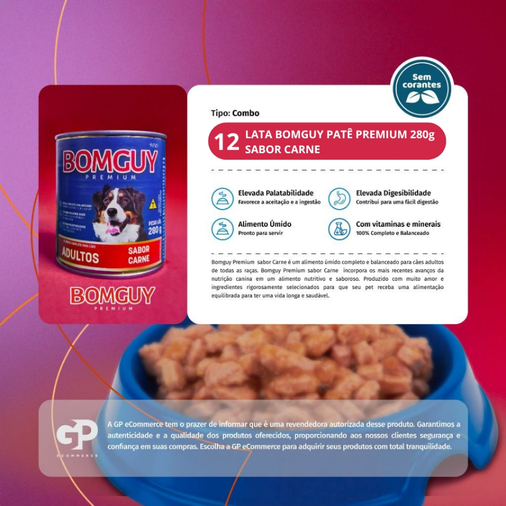 Kit 12 Bomguy Premium Patê Sabor Carne Ração Úmida para Cães Adultos 280g FVO