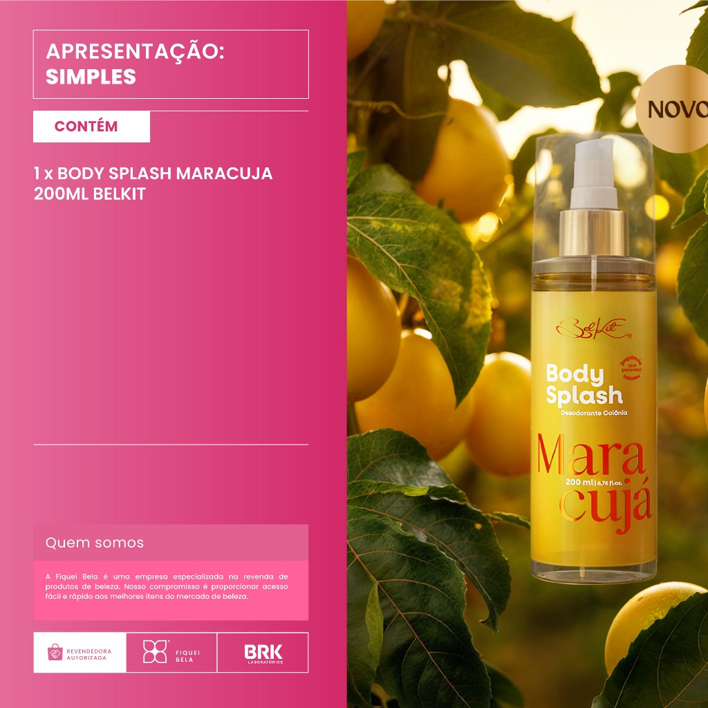 Body Splash Alta Fixação Maracujá 200ml Fragância Floral Belkit