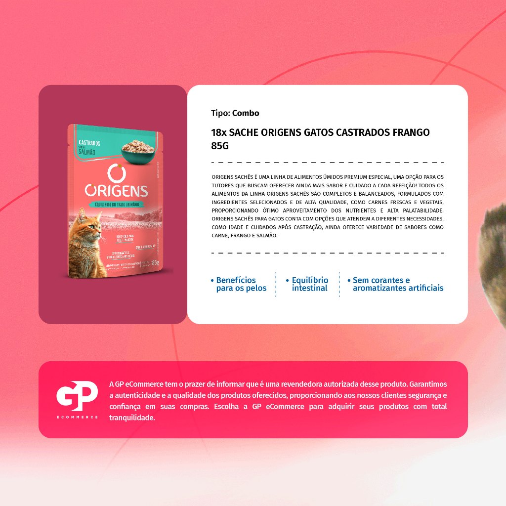 Kit CAIXA FECHADA 18 Sachê Origens Gatos Castrados Sabor Salmão Premium Especial 85g Adimax