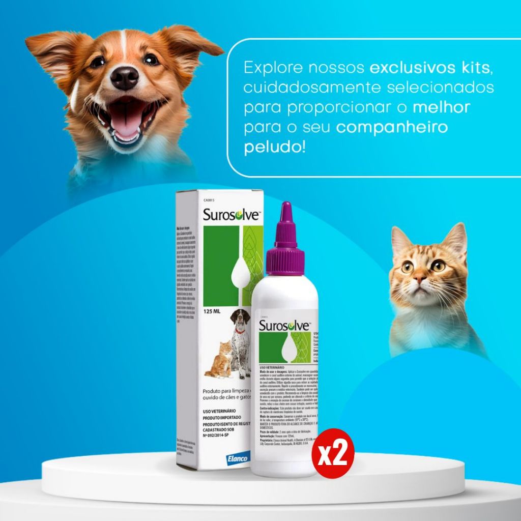 Kit 2 Surosolve 125ml Líquido para Limpeza de Ouvidos Elanco
