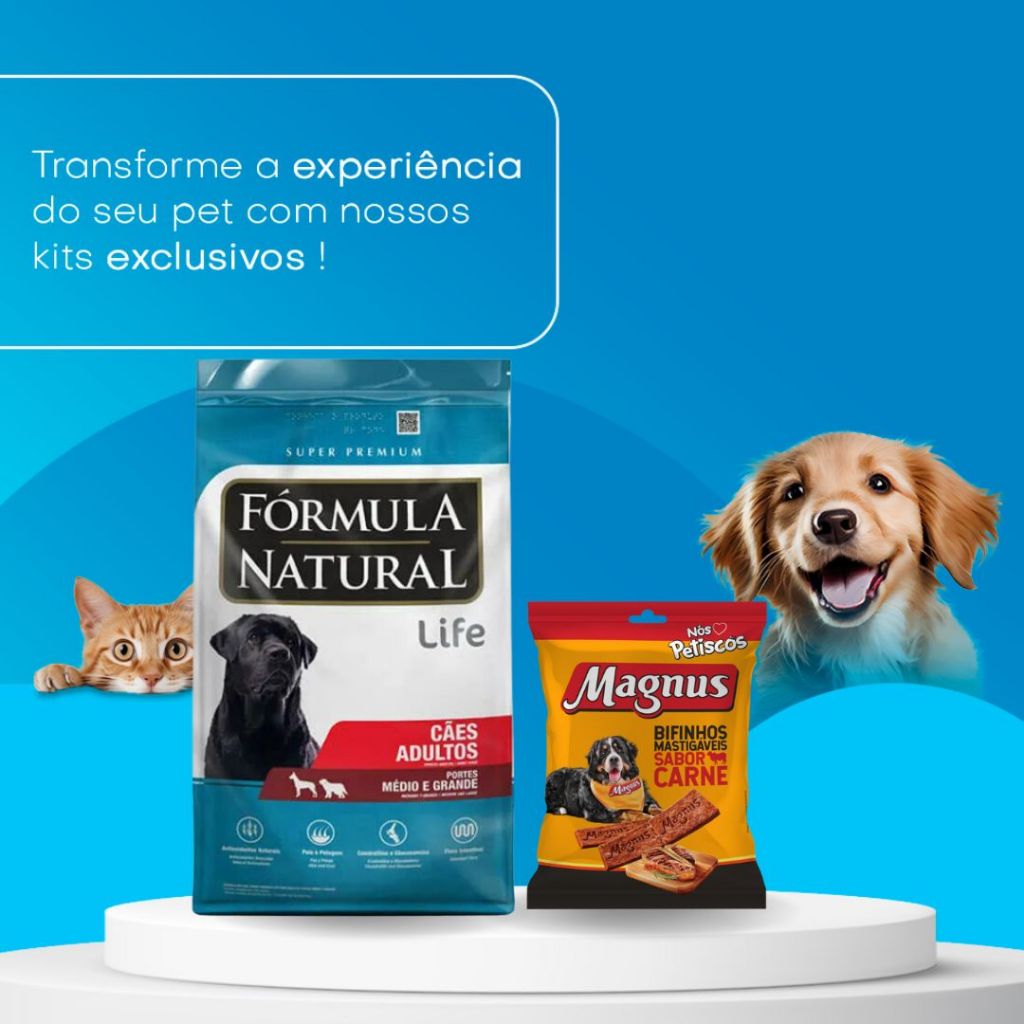 Kit Ração Fórmula Natural Life Cães Adultos Médio Grande 15kg + Magnus Bifinhos Master Carne 500g