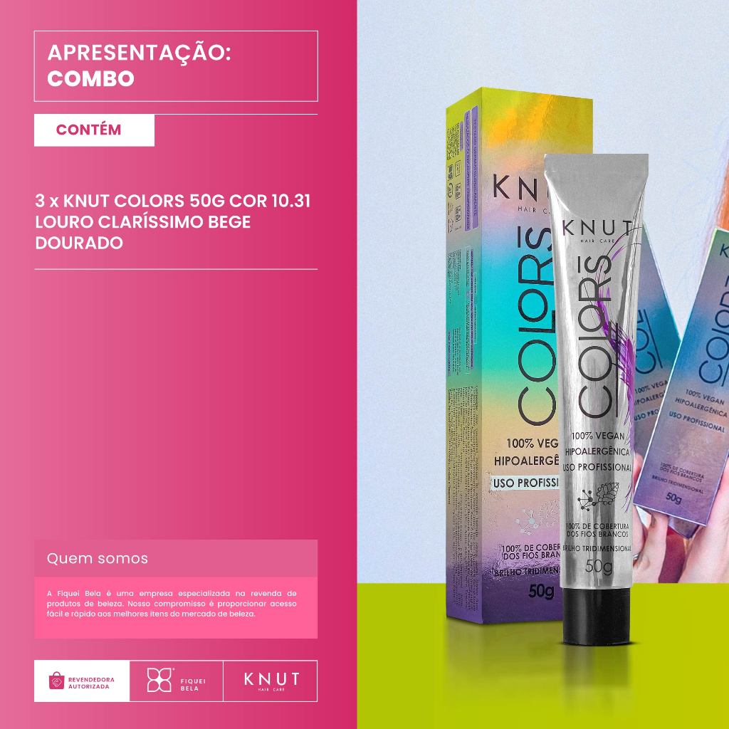 Kit 3 Knut Colors Coloração Capilar 50g Cor 10.31 Louro Claríssimo Bege Dourado