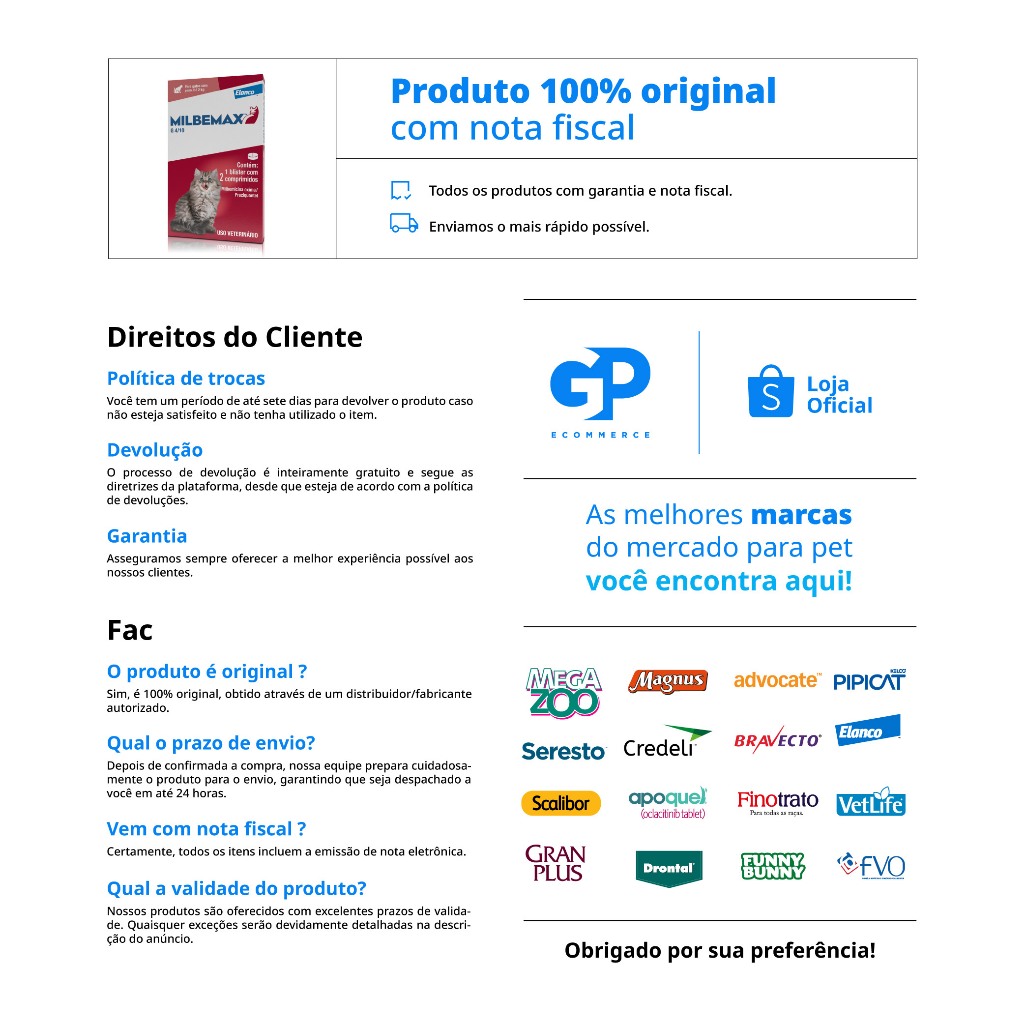 Vermífugo Milbemax FC para Gatos de até 2kg Elanco