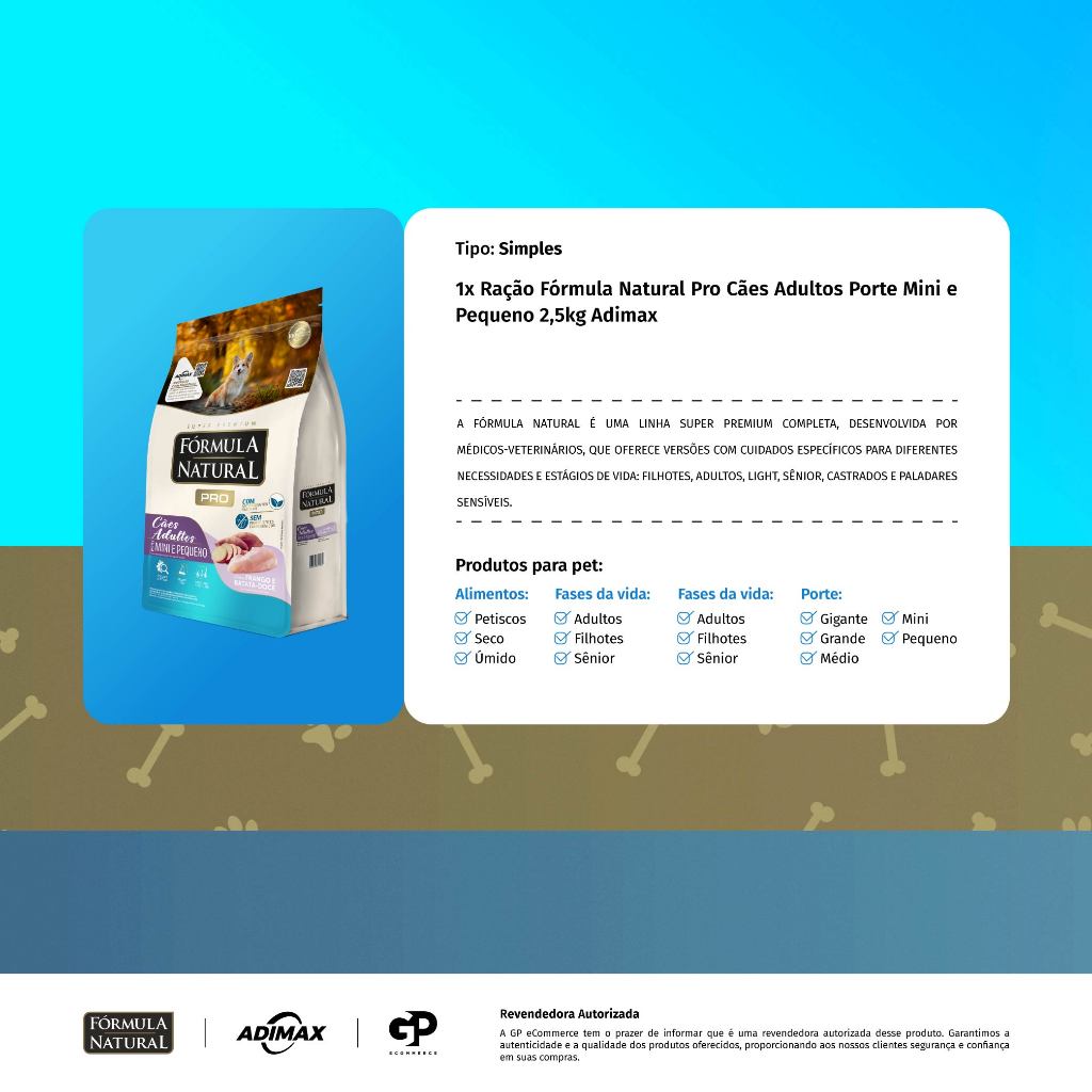 Ração Fórmula Natural Pro Cães Adultos Porte Mini e Pequeno 2,5kg Adimax
