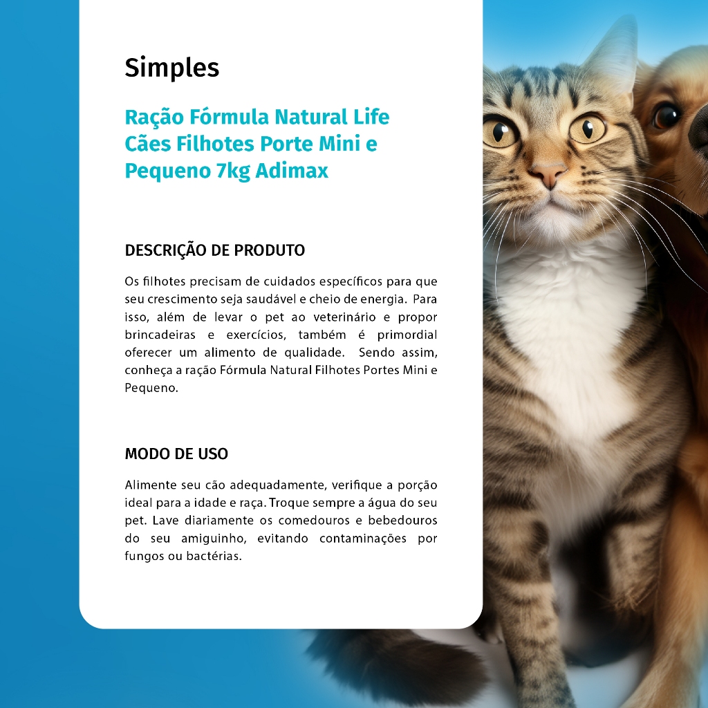 Ração Fórmula Natural Life Cães Filhotes Porte Mini e Pequeno 10,1kg Adimax