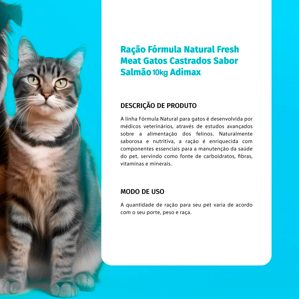 Ração Fórmula Natural Fresh Meat Gatos Castrados Sabor Salmão 10,1kg Adimax