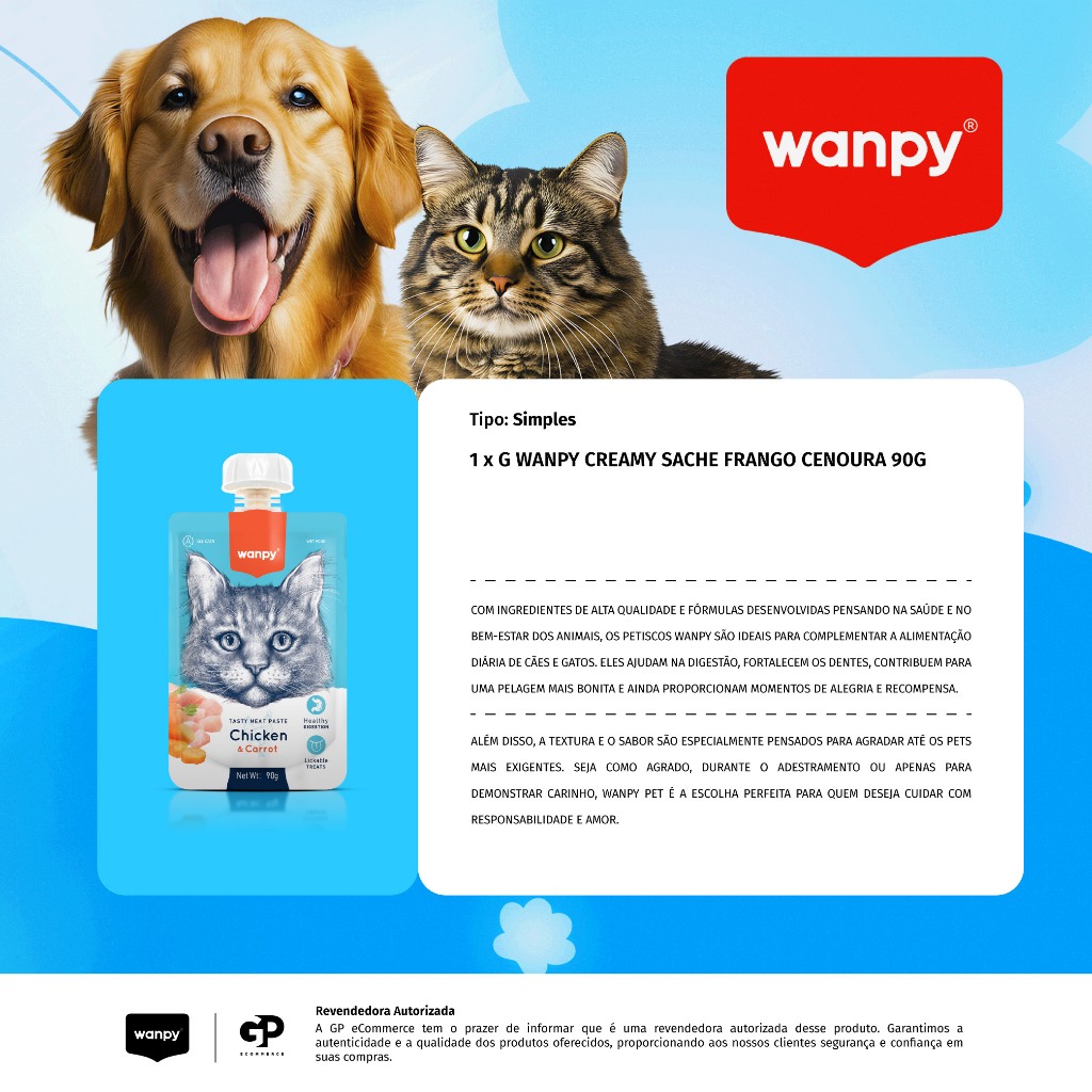 Truly Wanpy Petisco Creamy para Gatos Sabor Frango e Cenoura 90g