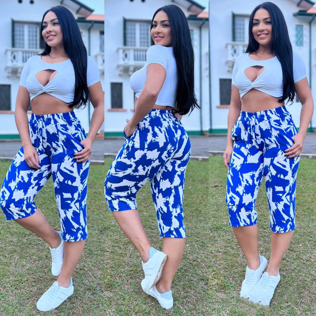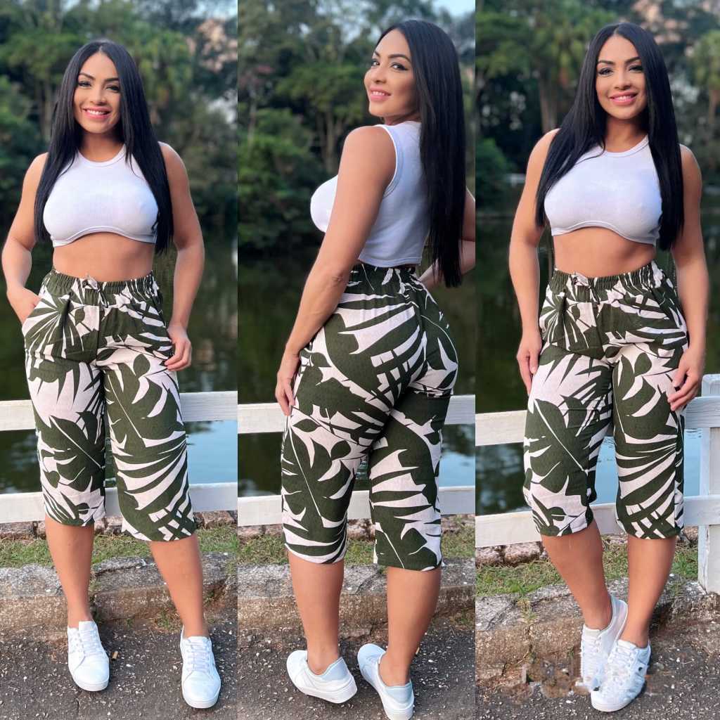 calça pantalona estampado de viscose forrado de cos alto