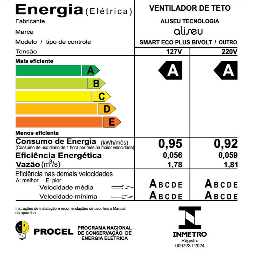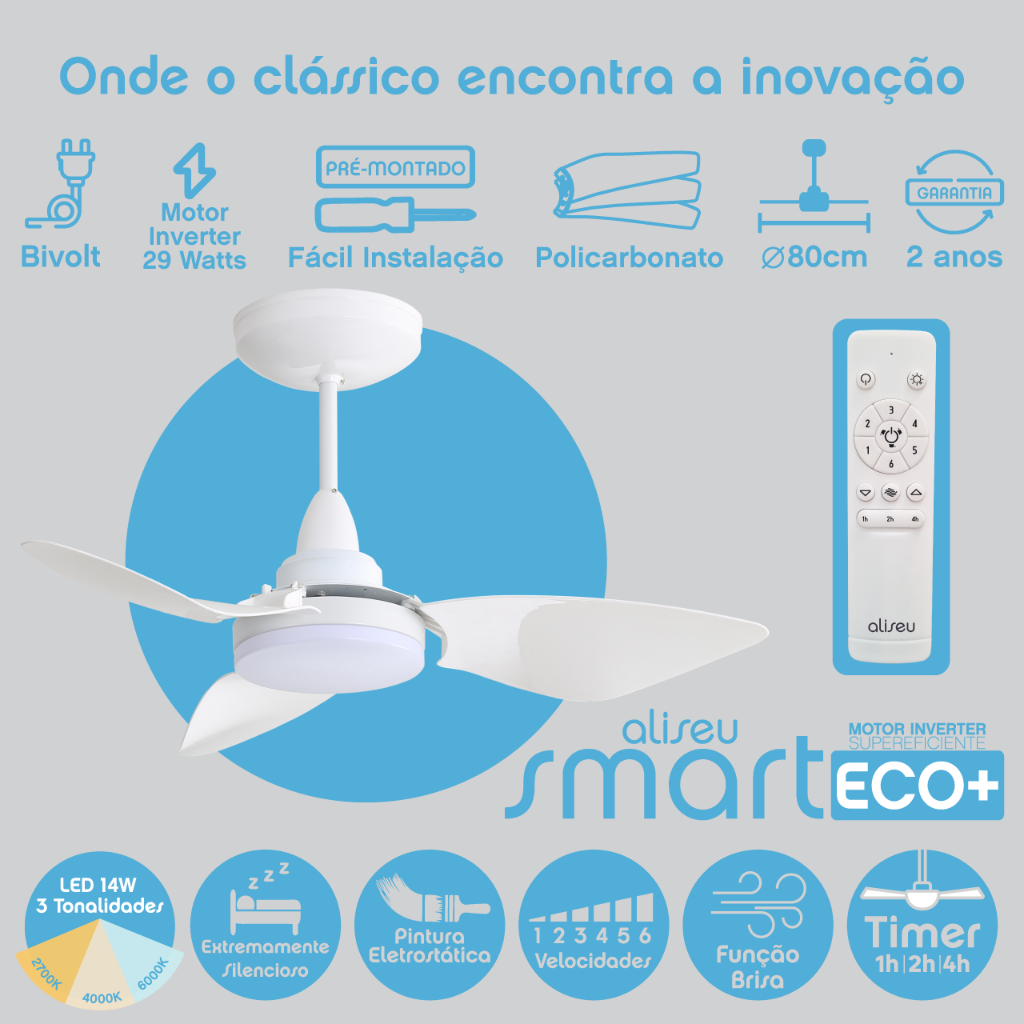 Ventilador De Teto Aliseu Smart Eco+ Com Motor Inverter