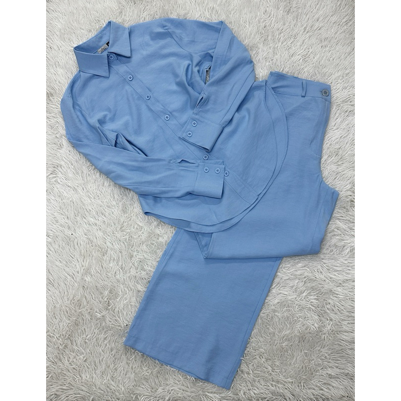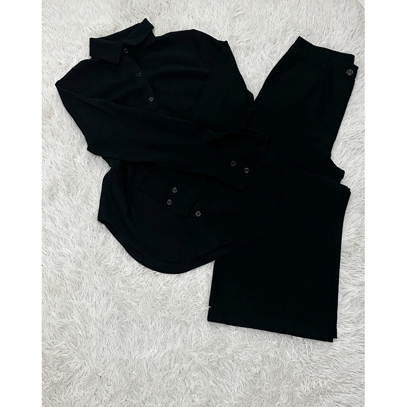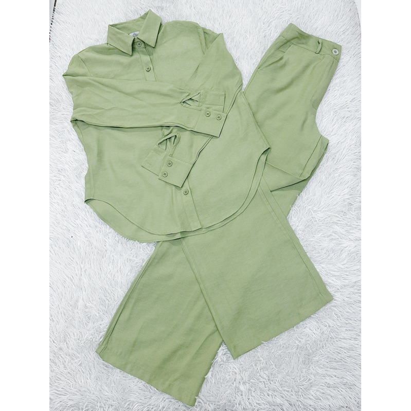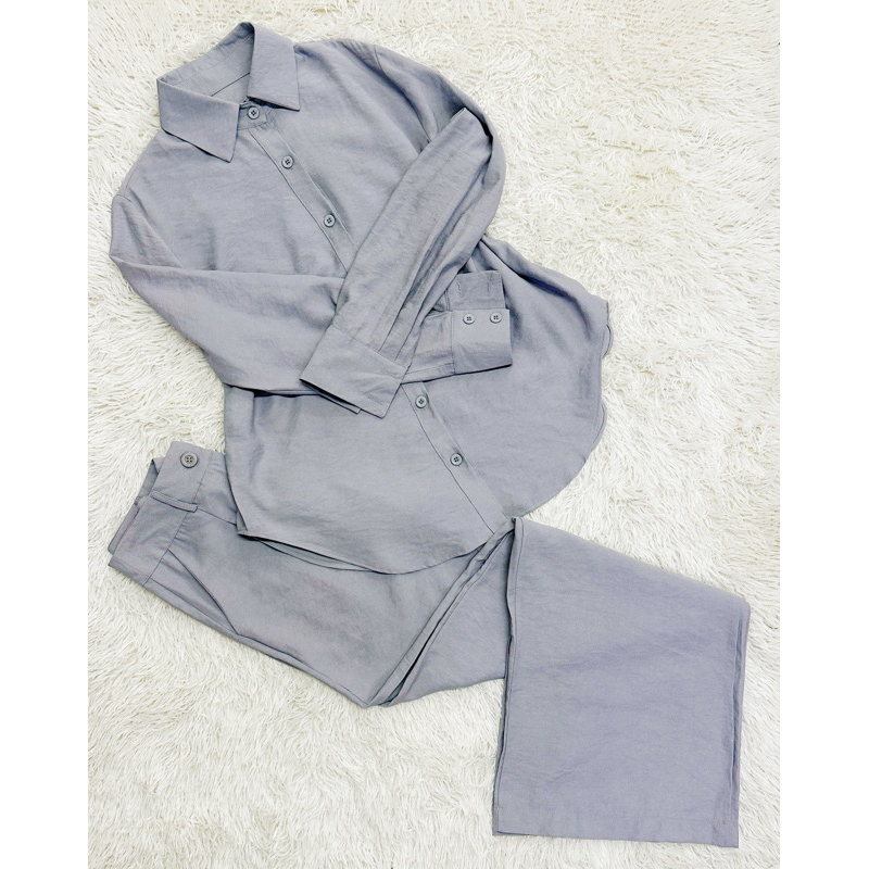 Conjunto de camisa de manga comprida + calça de perna larga