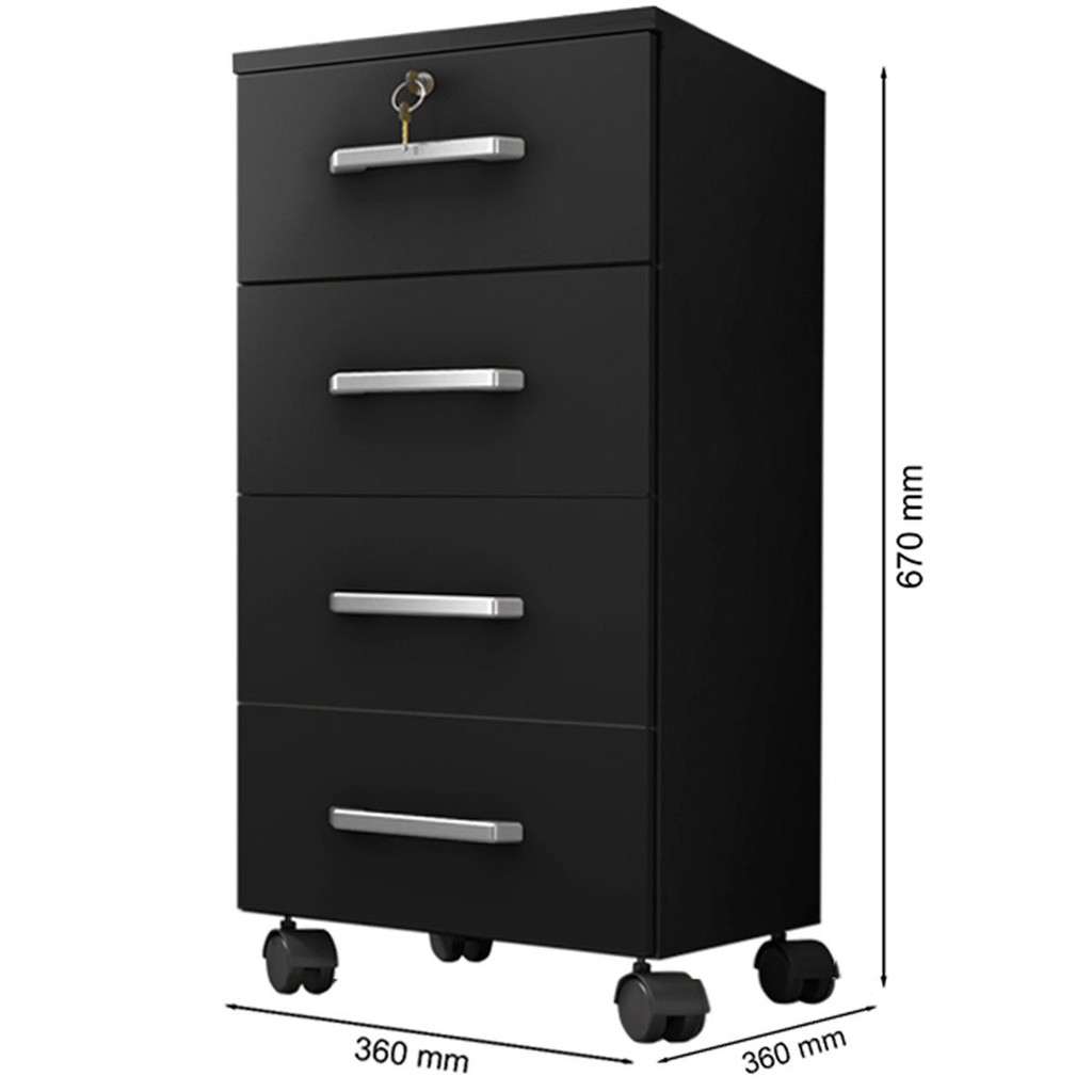 Gaveteiro para Escritório Alto 4 Gavetas 1 com Chave e Rodízios Embutidos