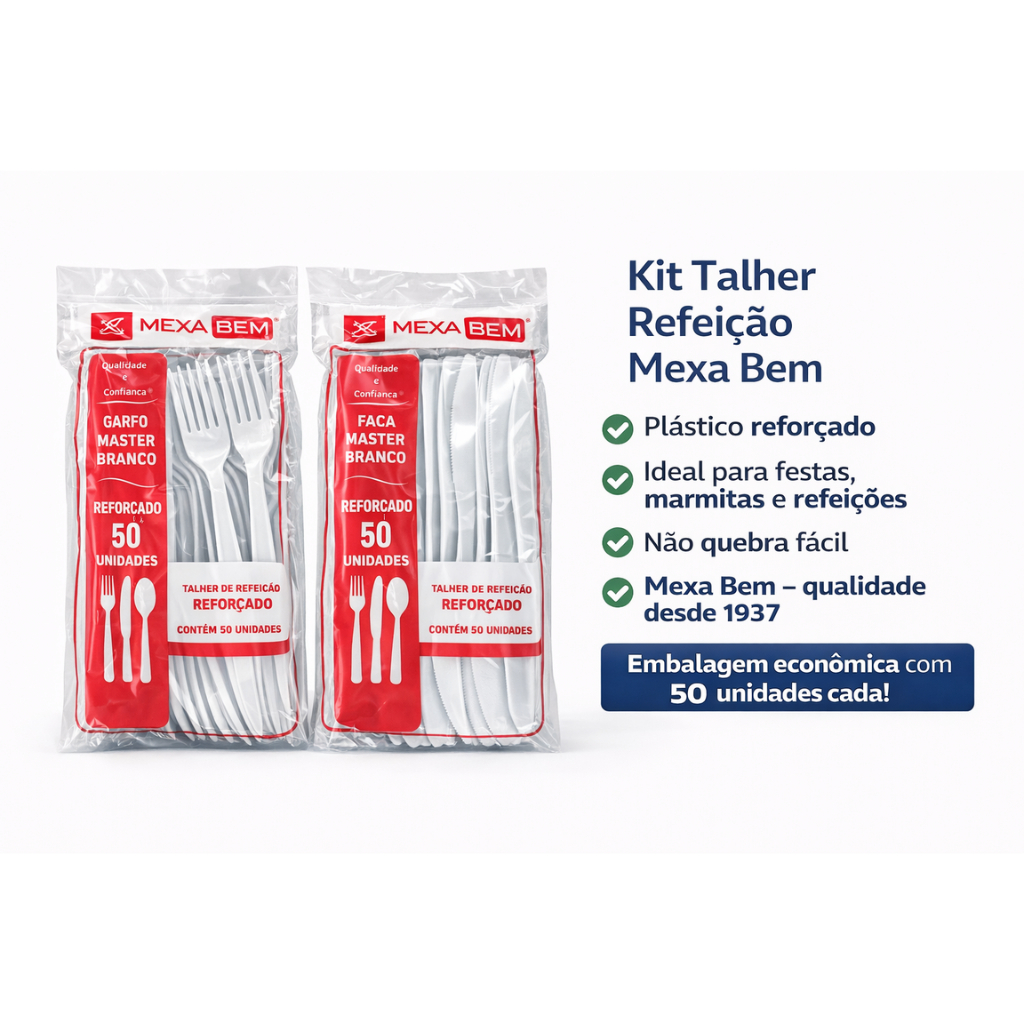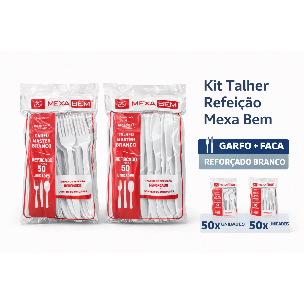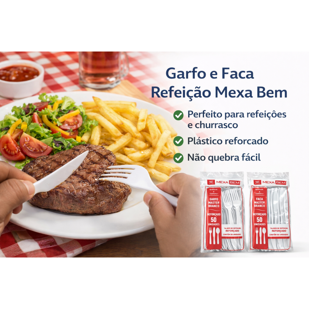Garfo e Faca Descartável 100 Unidades – 2 Pacotes de 50 Talheres Plásticos para Festa, Churrasco