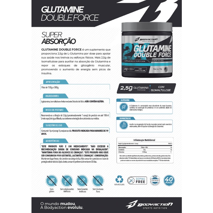 Glutamina Com Isomaltulose Super Absorção 150g - Bodyaction
