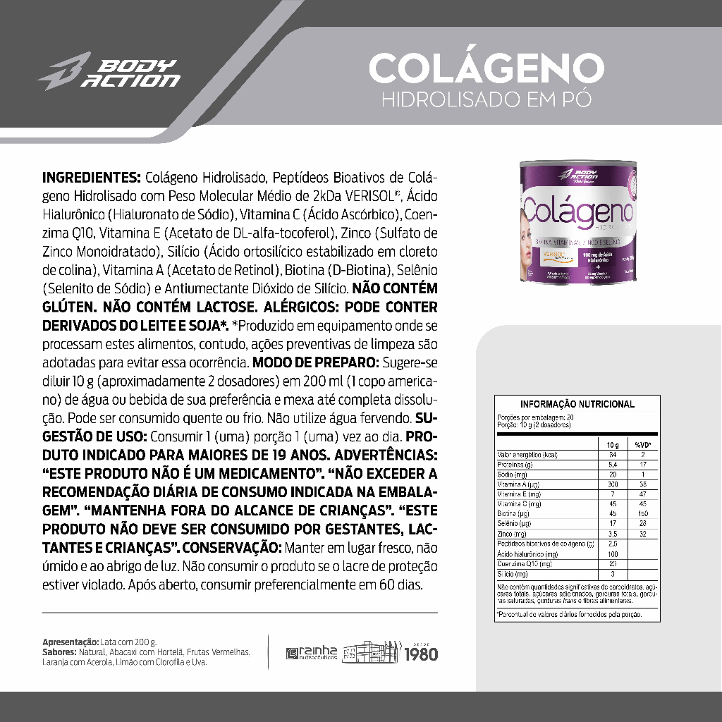 Colágeno Verisol com Ácido Hialurônico Biotina Vitaminas 200g Bodyaction