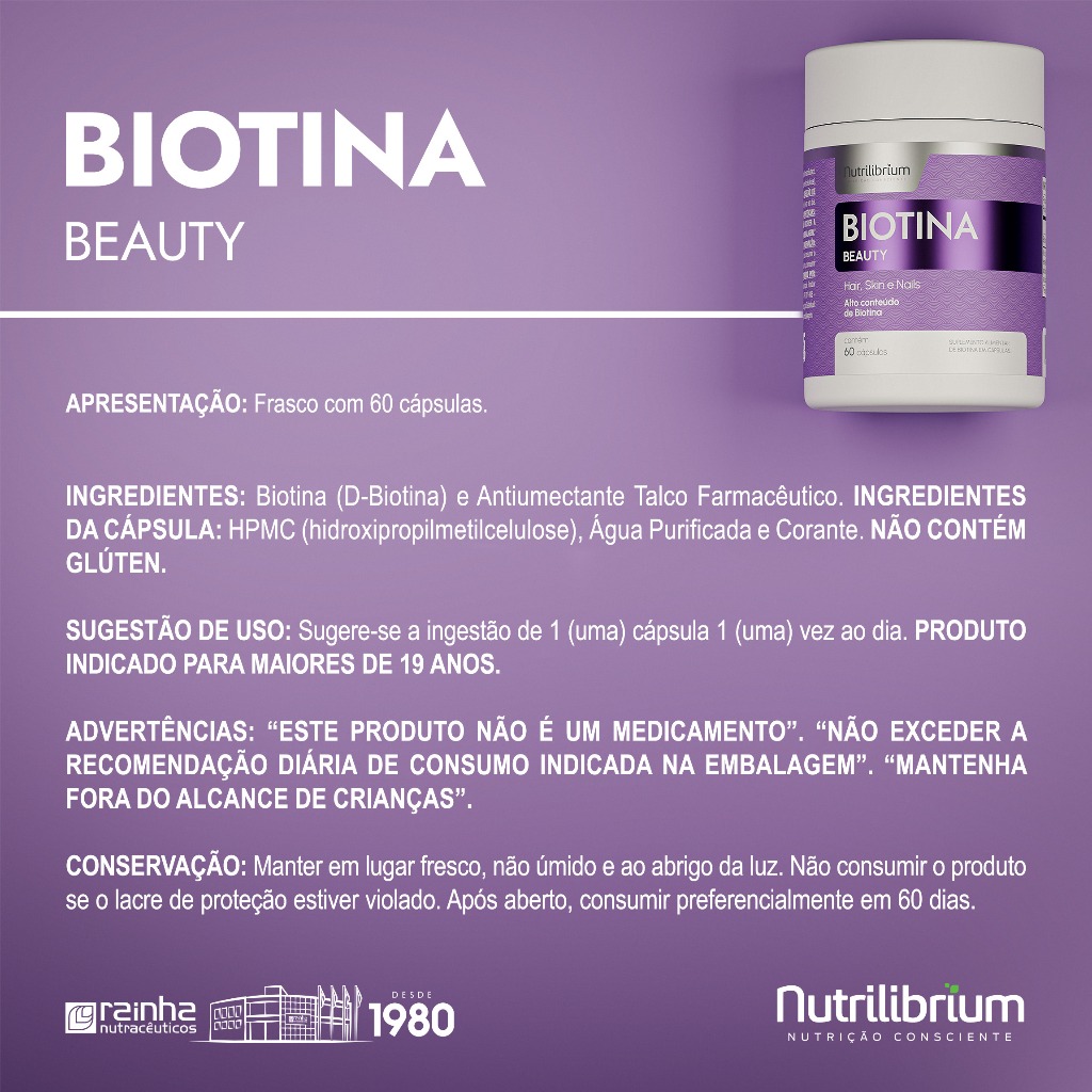 Atacado 12x Biotina Beauty 60 Cápsulas Nutrilibrium