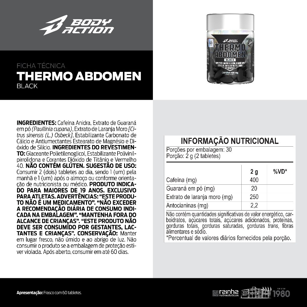 Kit 6x Thermo Abdomen Black 60 Comprimidos Bodyaction