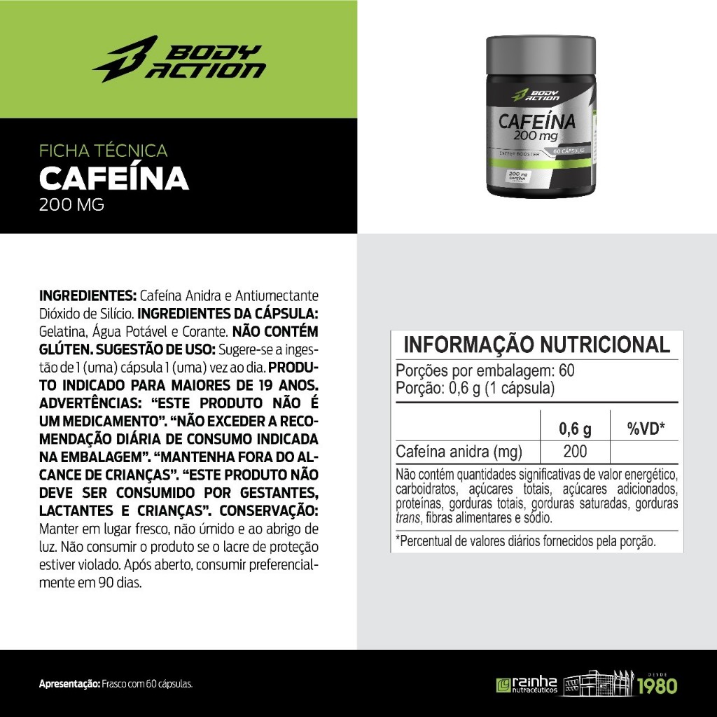 Kit 3x Cafeína 200mg Energy Booster Total 180 Caps Bodyaction