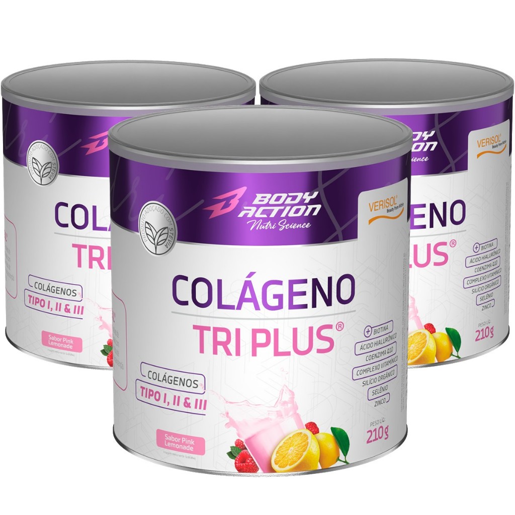 Kit 3x Colágeno Verisol Tri Plus Tipo 1, Tipo 2 e 3 - 210g Bodyaction