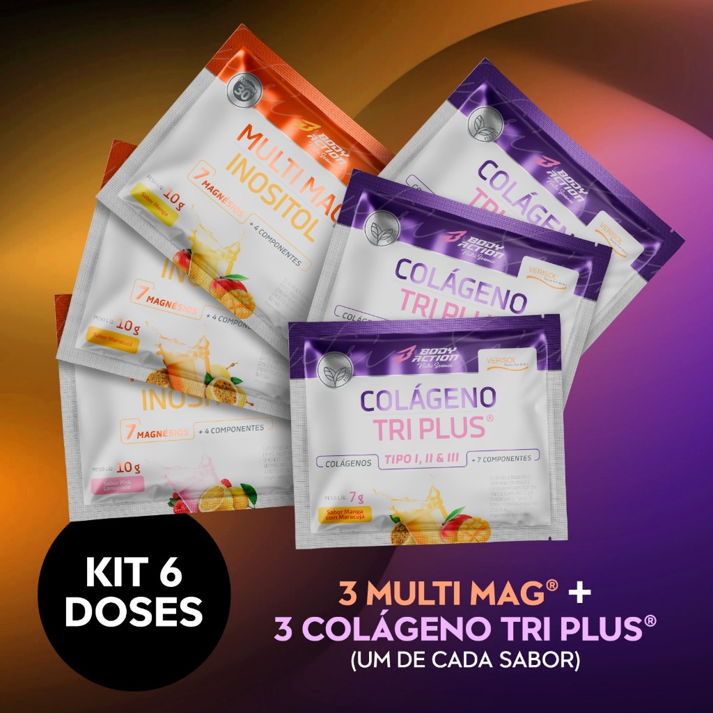Kit 3x Multi Mag Inositol 10g + 3x Colágeno Verisol Tri Plus 7g Sachê Dose Única Bodyaction