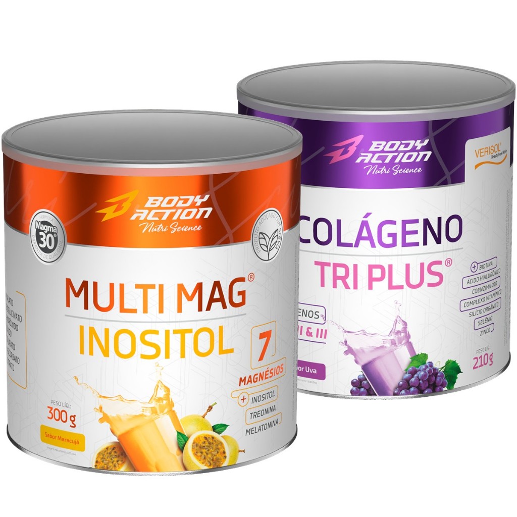 Kit Multi Mag 7x Magnésios 300g + Colágeno Verisol Tri Plus 210g Bodyaction
