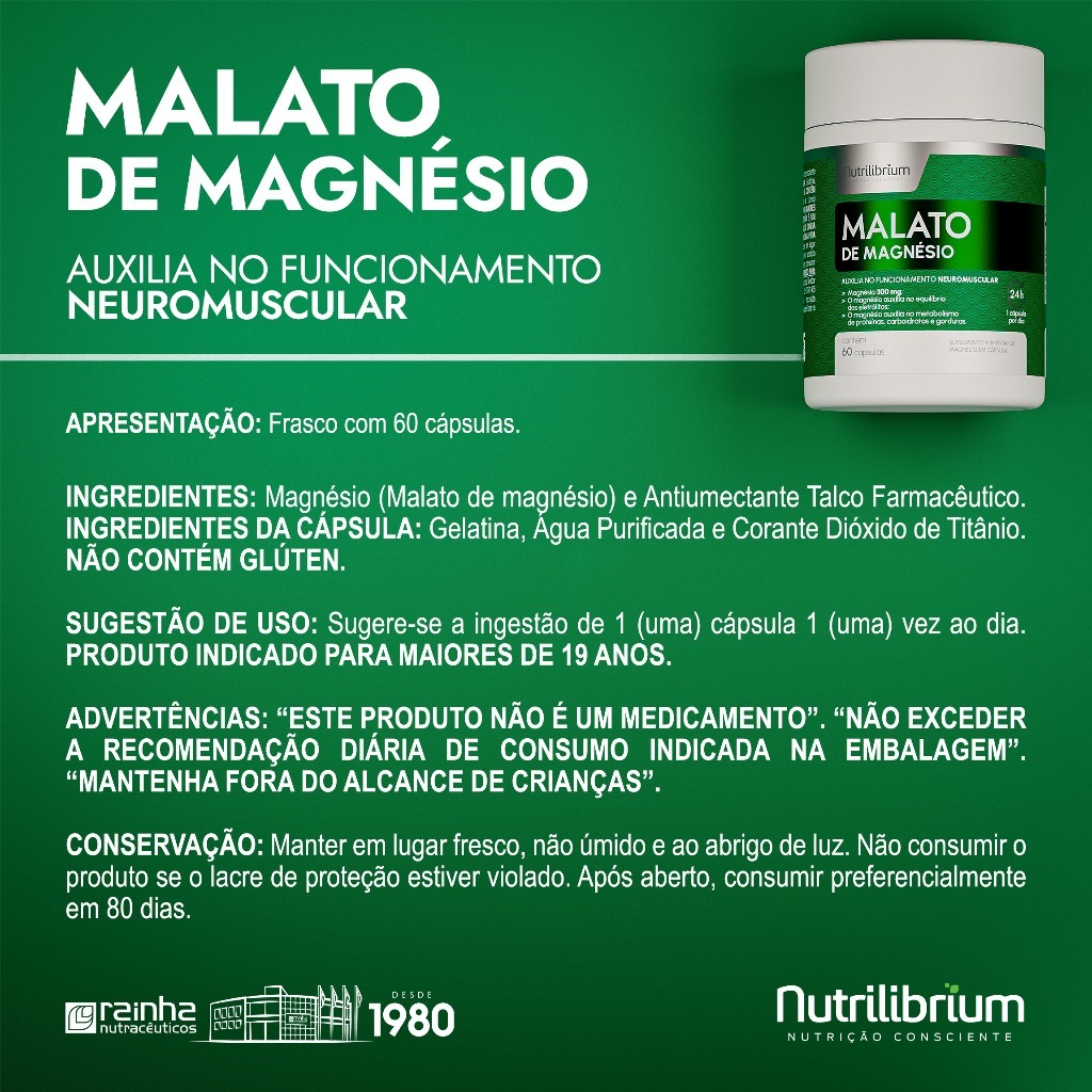 Kit 3x Magnésio Malato Total 180 Cápsulas 300mg Nutrilibrium