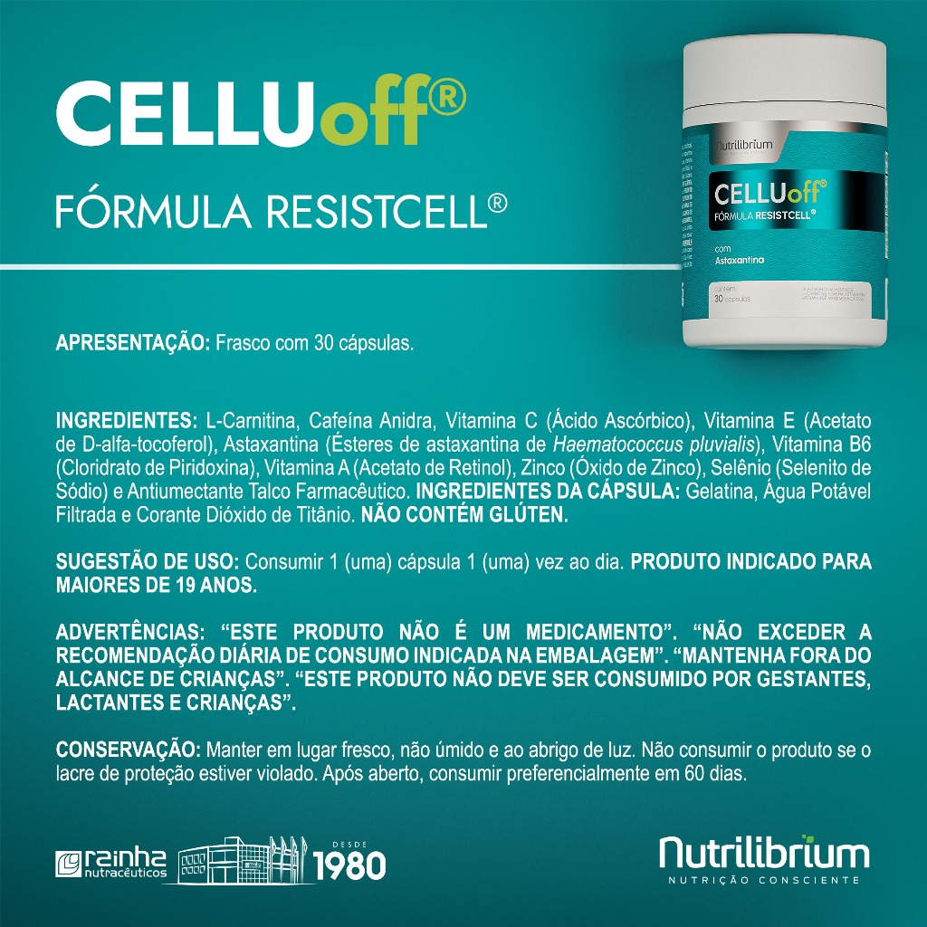 Kit 3x Celluoff ResistCell Celulite Total 90 Caps 3 Meses Nutrilibrium