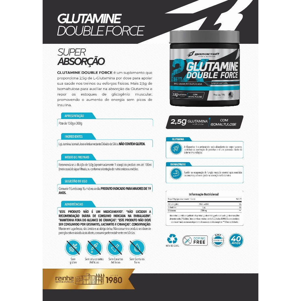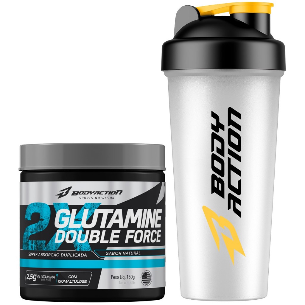 Glutamina Super Absorção 150g + Coqueteleira Academia Bodyaction