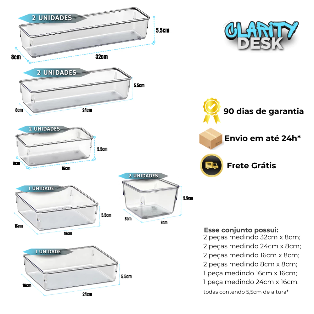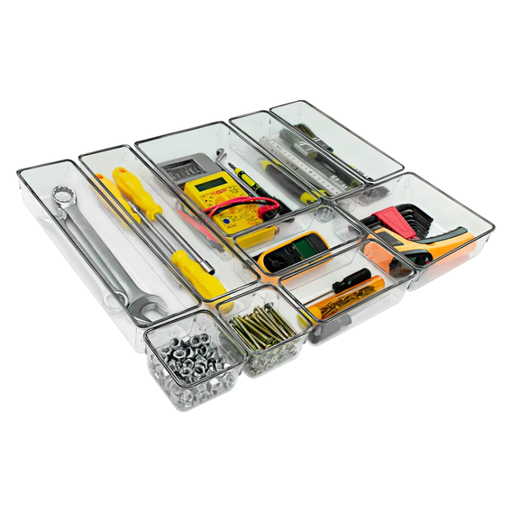 Acrimet Kit 10 Organizadores Multiuso Acrílico Cristal Para Gavetas Cozinha Banheiro - 979