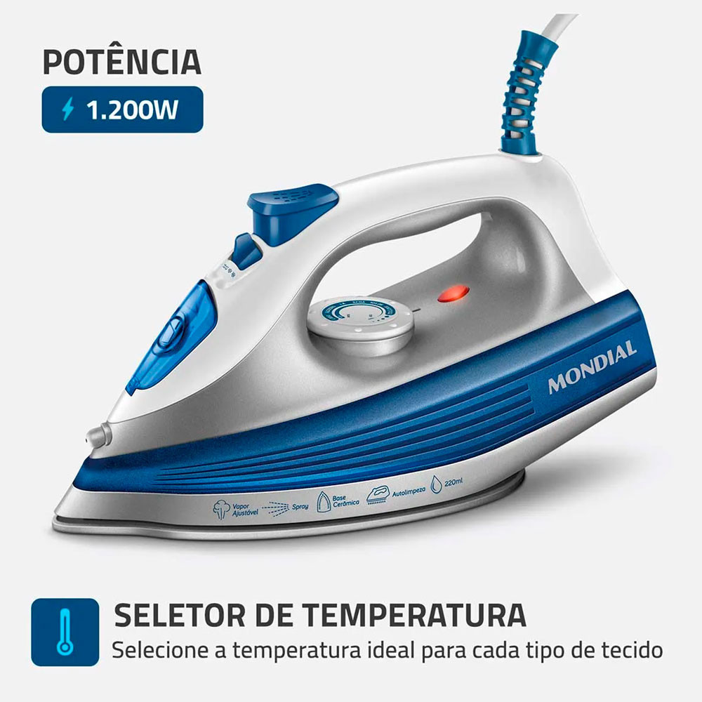 Ferro de Passar a Vapor Mondial FVN-01-BL 1200W