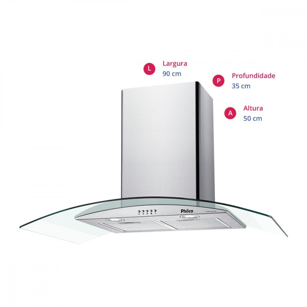 Coifa de Parede Philco Glass PCO90G 90cm 3 Velocidades 220V