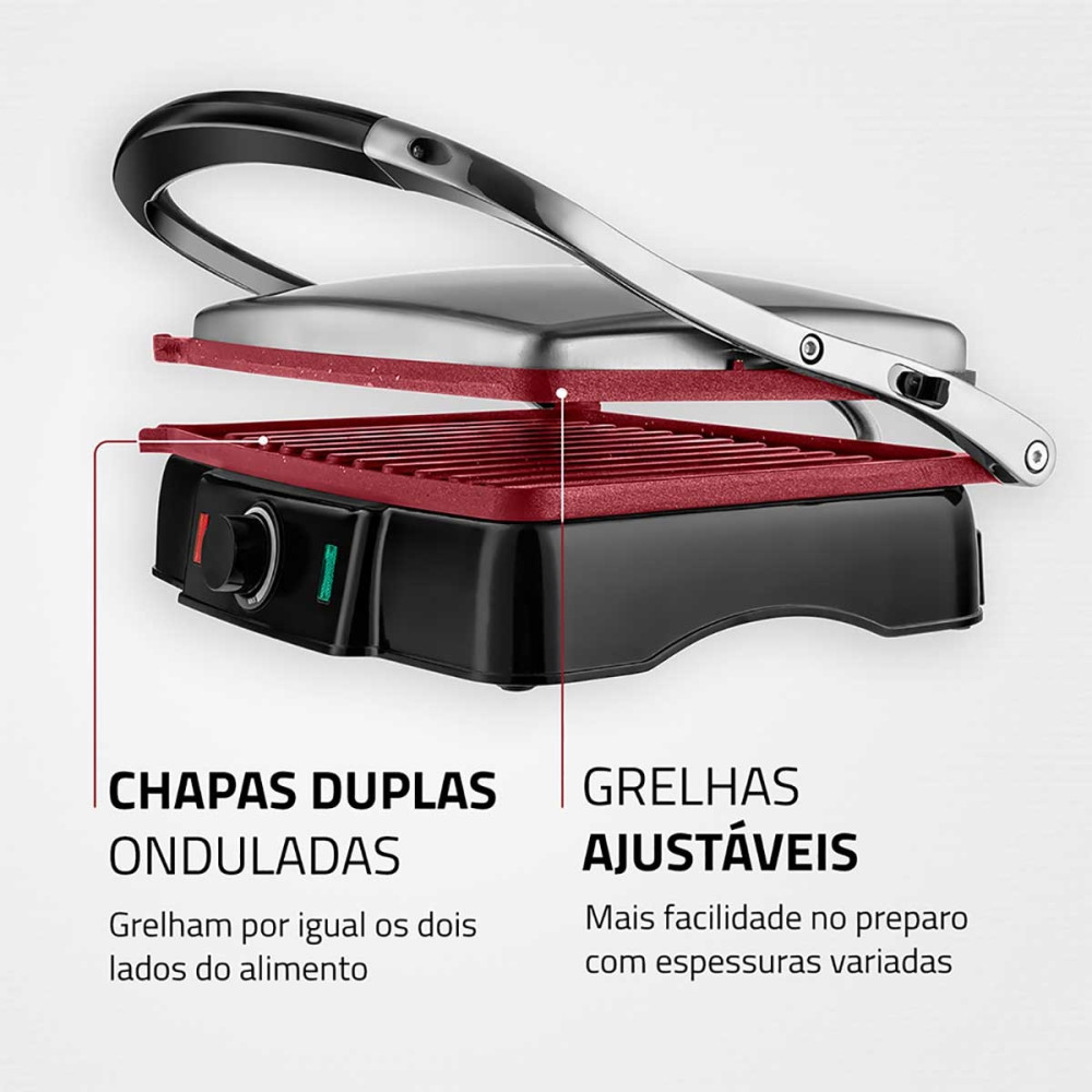 Grill e Sanduicheira Premium PG-02 Preto/Inox 1800W S-07 Mondial