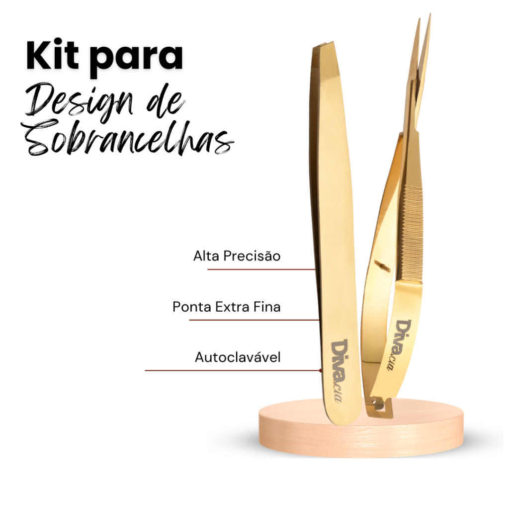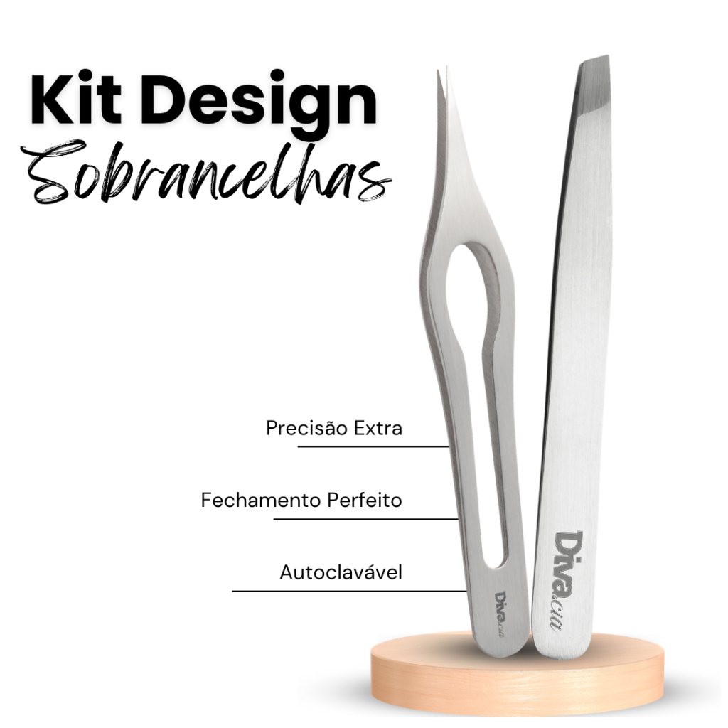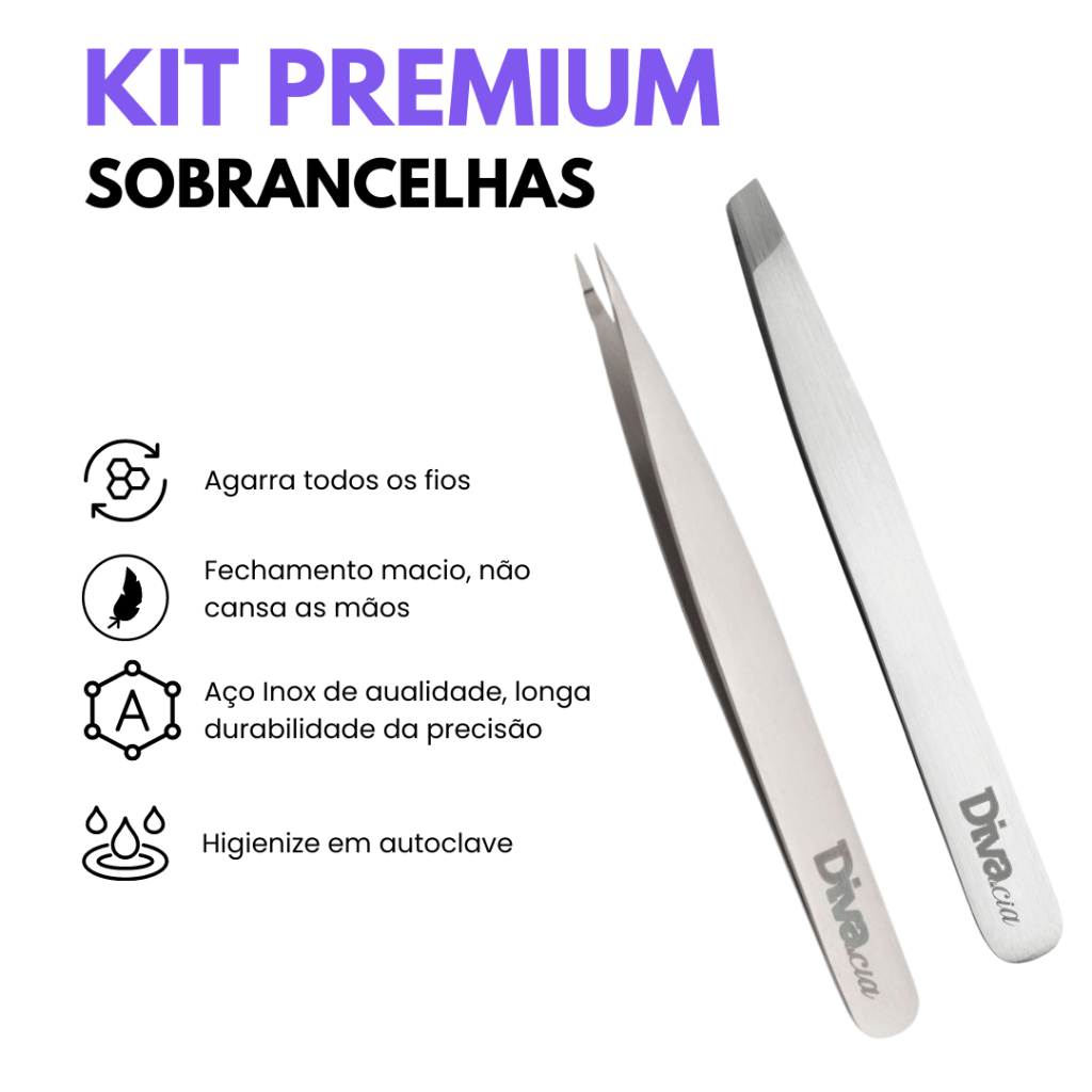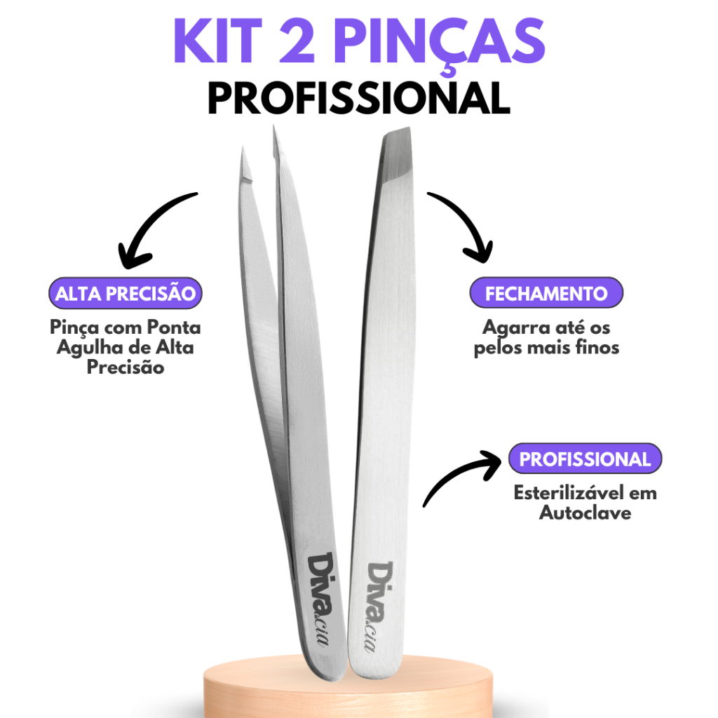 Kit Pinças Sobrancelhas Pinça Ponta Agulha Extra Fina e Chanfrada Design Sobrancelhas Autoclavável