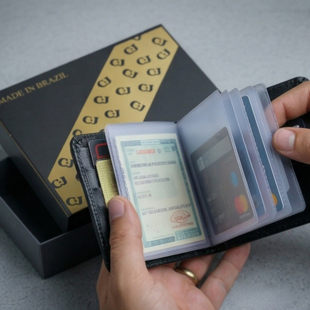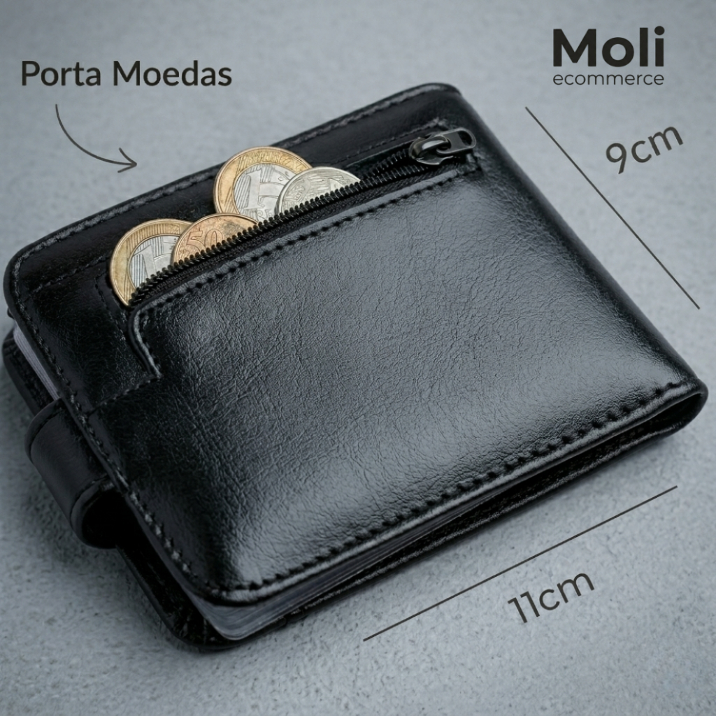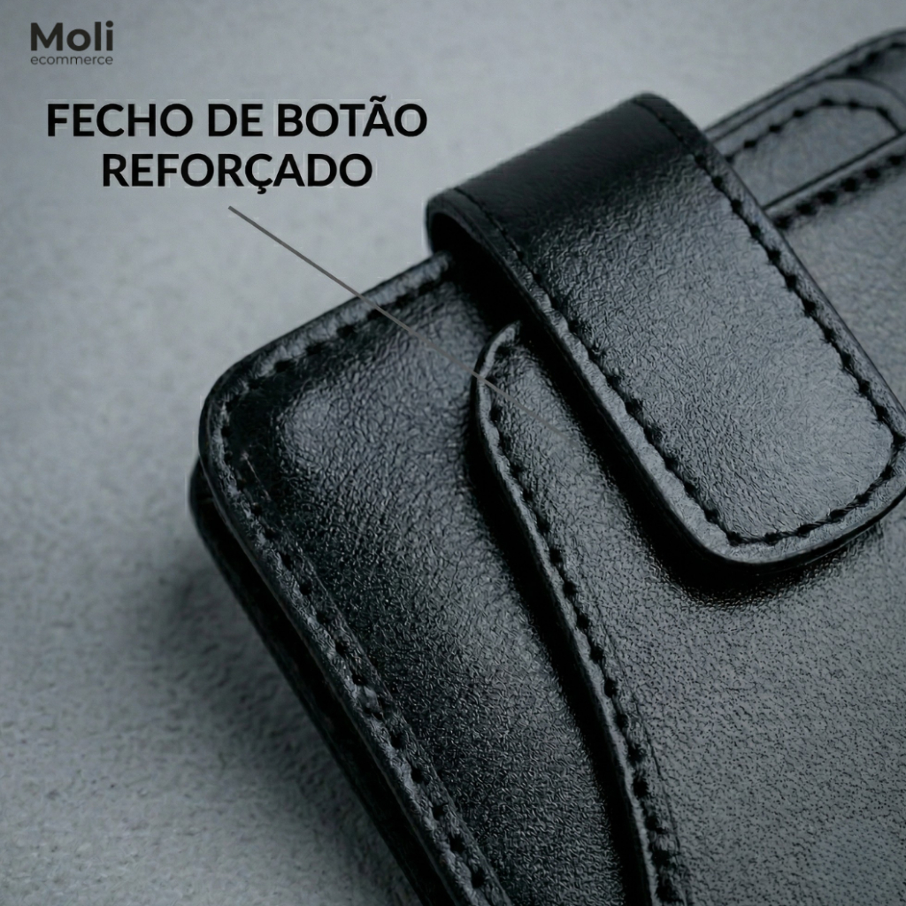 Carteira Masculina Slim Couro Legítimo Porta Cartão Compacta Elegante Com Botão