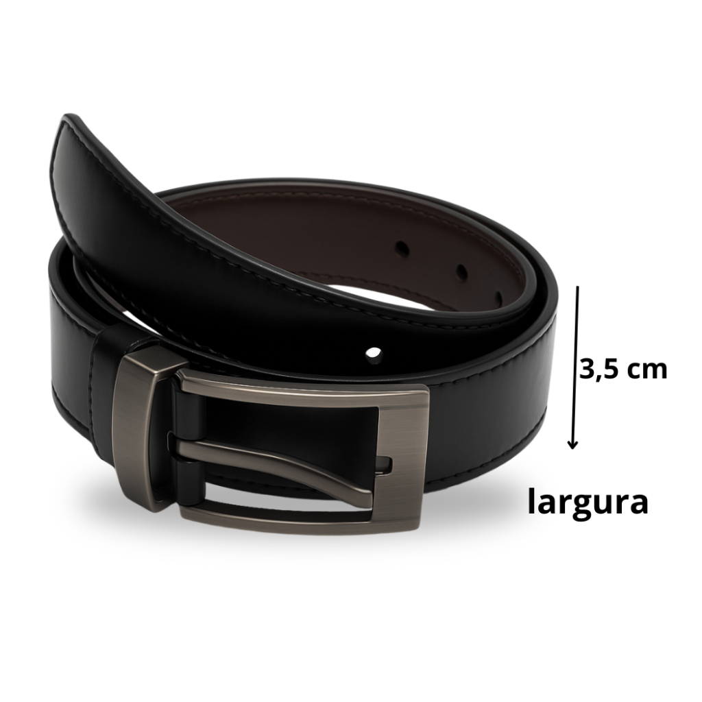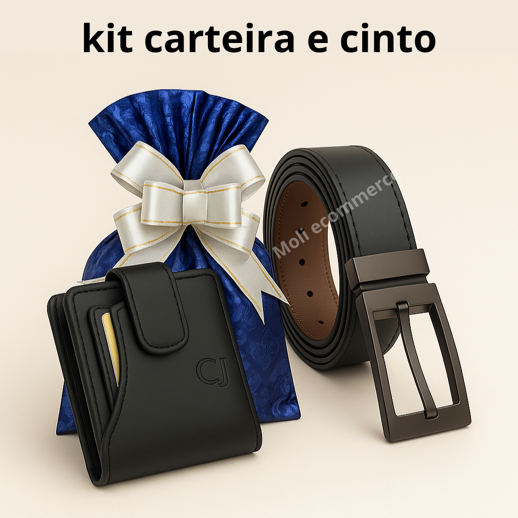 Kit Carteira Masculina couro e Cinto dupla face -Embalado Para Presente