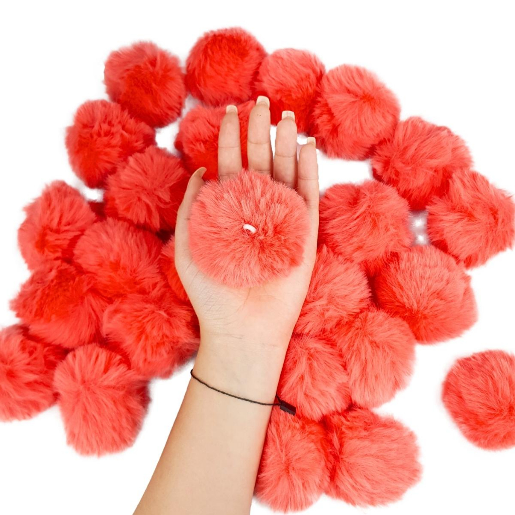 Pompom Pelúcia 70mm Macio Com Elástico | Ideal p/ DIY, Laços, Chaveiros e Acessórios C/30 Unidades