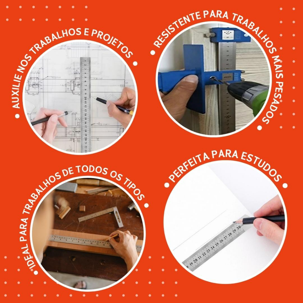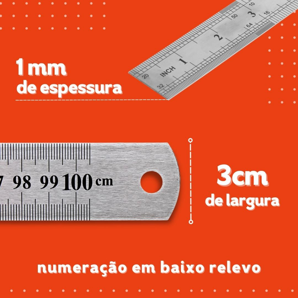 Régua De Metal - Aço Inox - Patchwork - 30 Cm/ 60 Cm/ 1 Metro - CRIAR