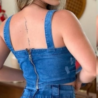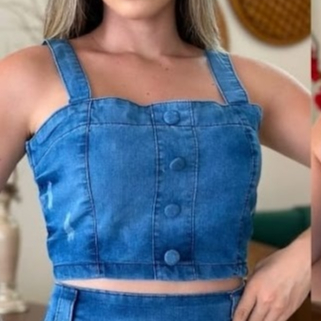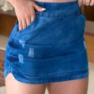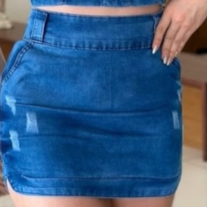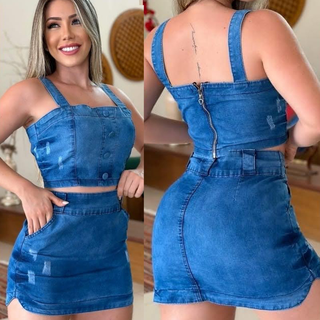 Conjunto Jeans Feminino Cropped e Saia Com Elastano Lycra Strech Moda Blogueira