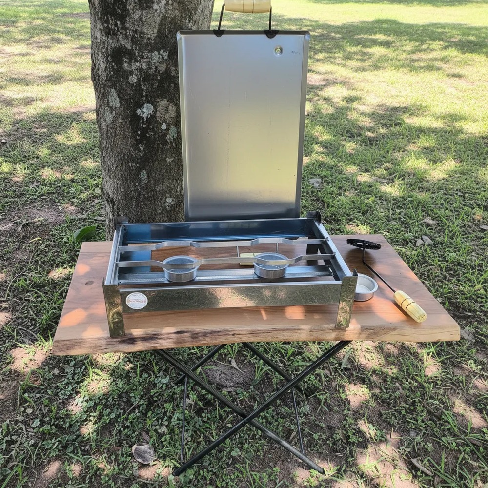 Fogão Em Inox A Álcool 2 Bocas Econômico Ecológico Com Chapa Serve Para Panelas