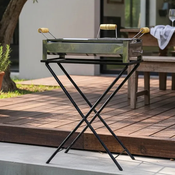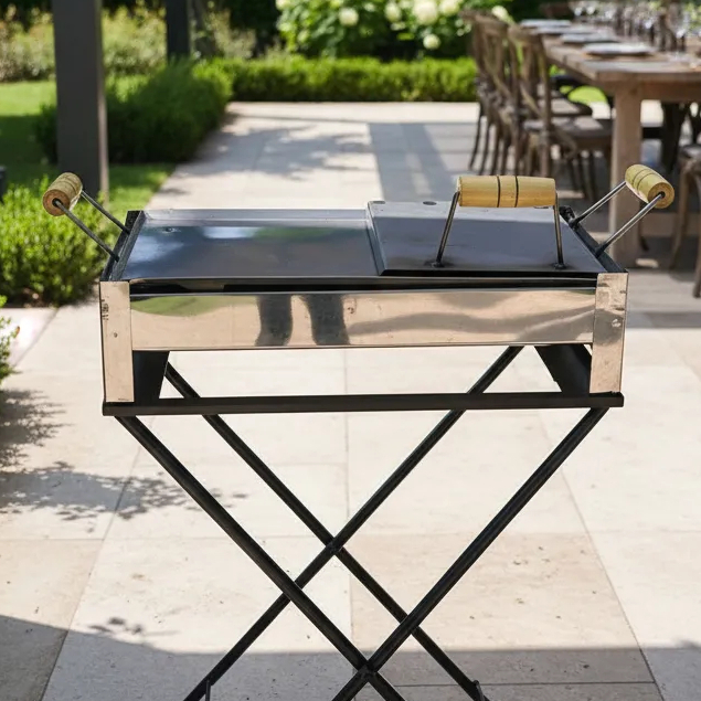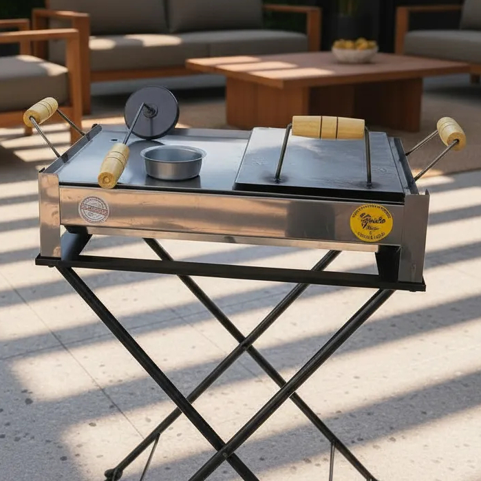 Fogão Inox A Álcool 2 Bocas E Chapa Prensa E Mesinha