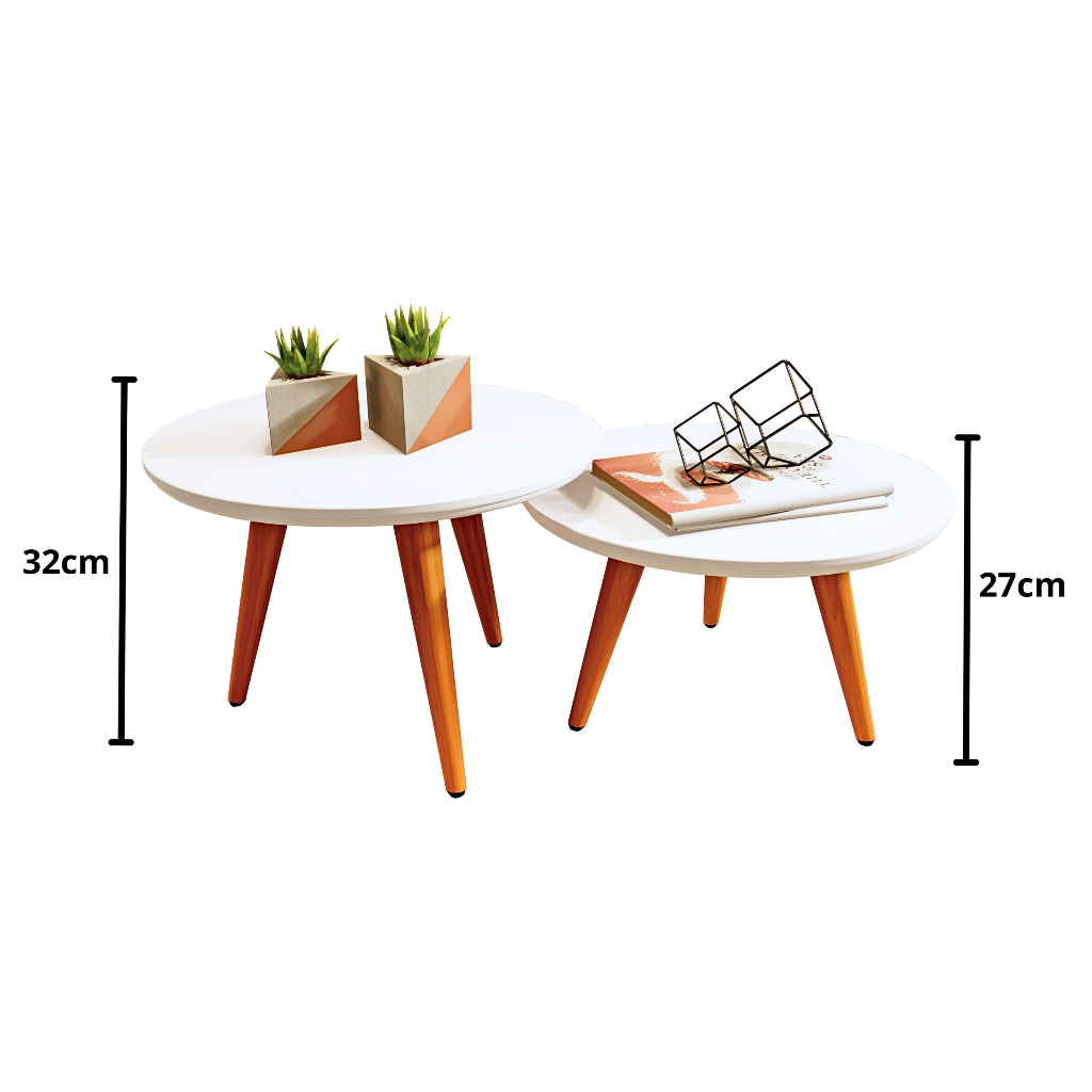 Conjunto 2 Mesas De Centro Redondas Para Sala Decoração Pés Palito