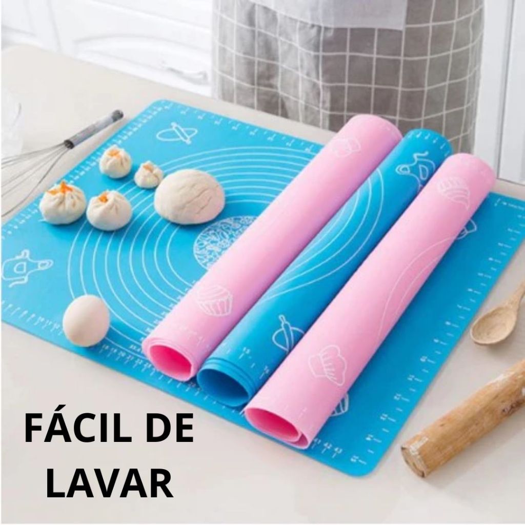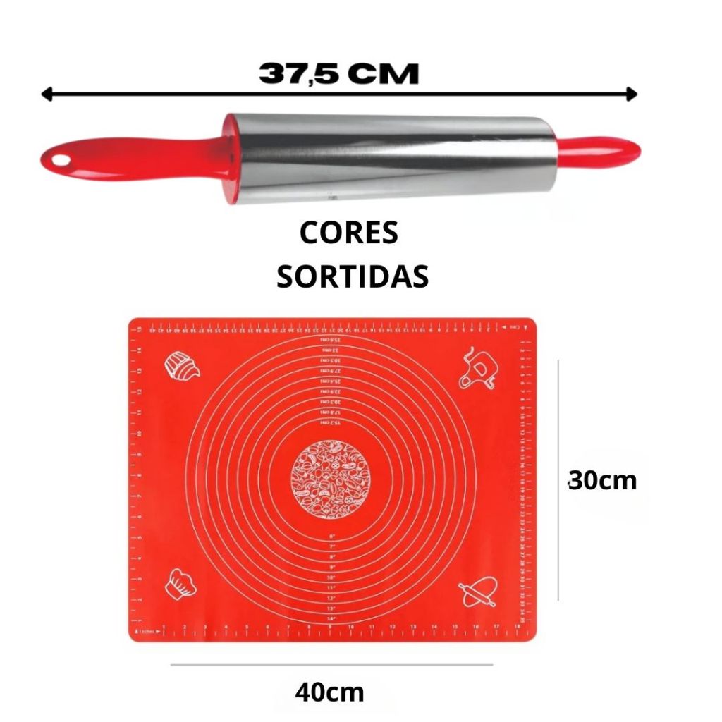 Kit 2 Tapete Culinária De Silicone Antiaderente de Abrir Massas + Rolo De Massa Giratório Inox